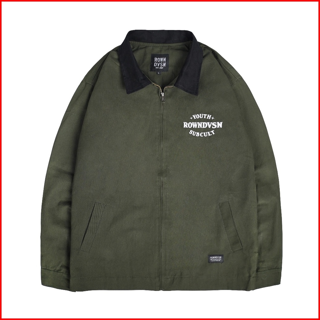 Rown Division Deck Jacket - Rowndvsn Jaket Kanvas Volans Green Army