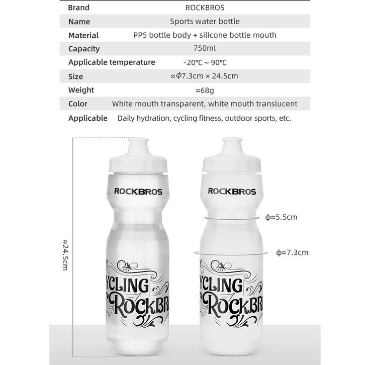 ROCKBROS DCBT69 Botol Minum Sepeda Olahraga 750ml - Water Drink Bottle Outdoor Sport Cycling Plastic