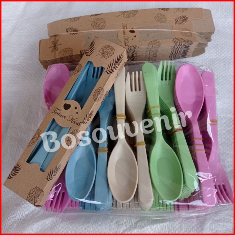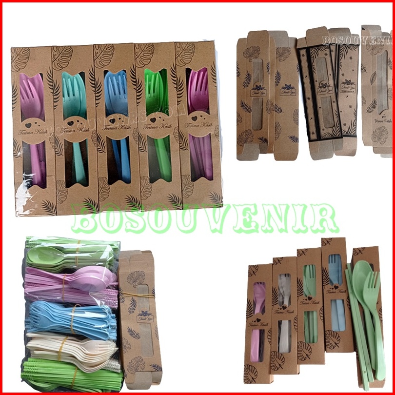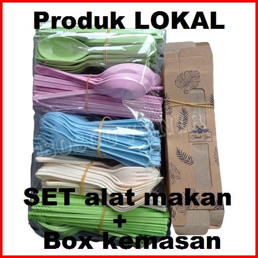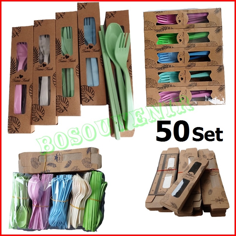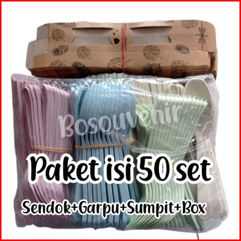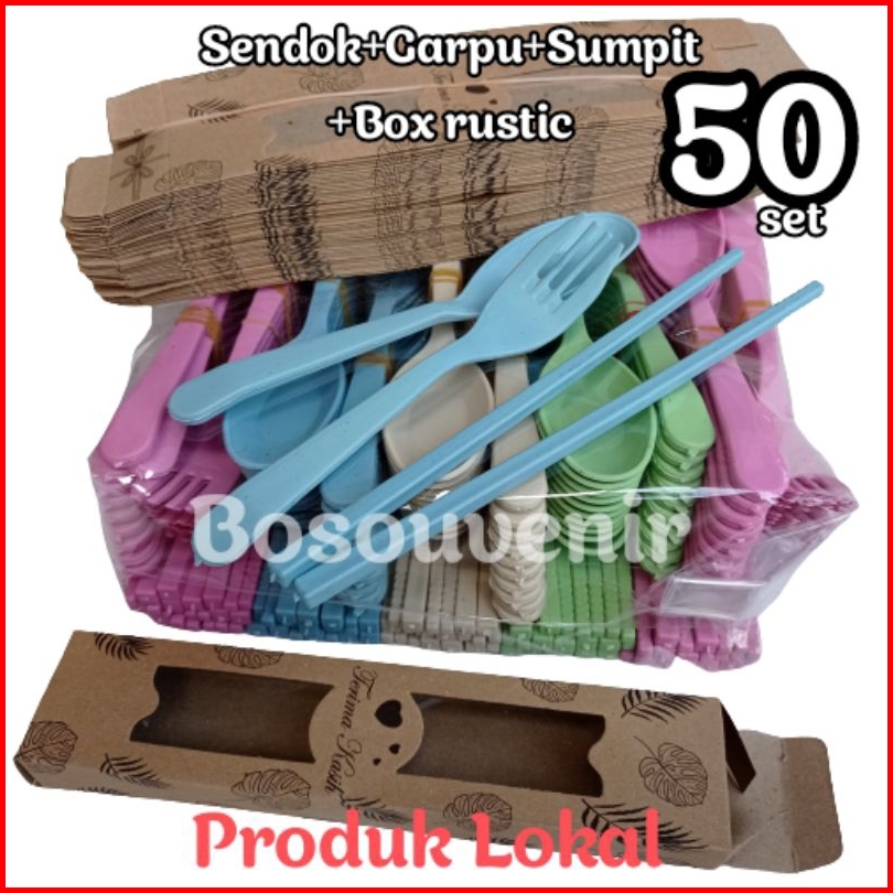 Isi 50set Sendok Travel Lokal Box Lembaran Sendok Garpu Sumpit Box Lokal Untuk Souvenir Pernikahan Souvenir Khitanan