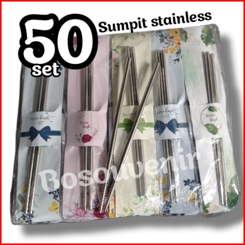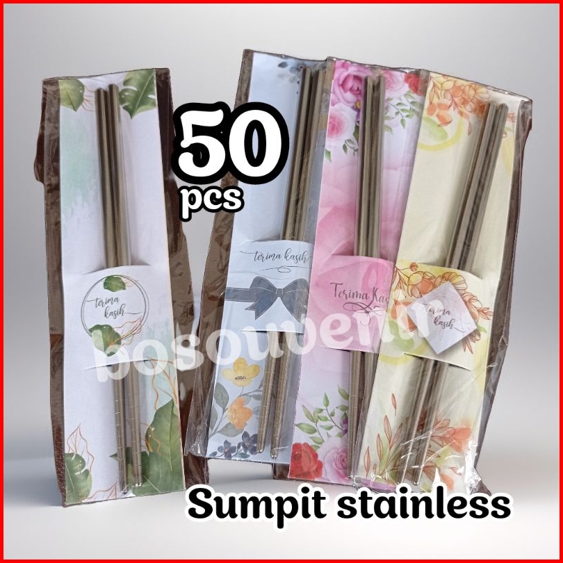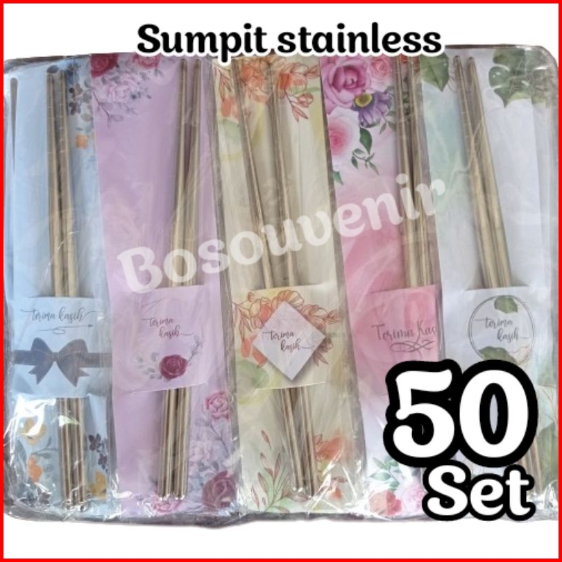 Isi 50 Set Sumpit Stainless Saby Souvenir Pernikahan Khitanan