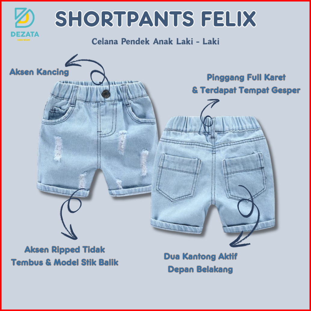 Shortpants Felix Celana Pendek Anak Laki-laki 1-4 Tahun Celana Pendek Jeans Anak Celana Anak Laki-laki