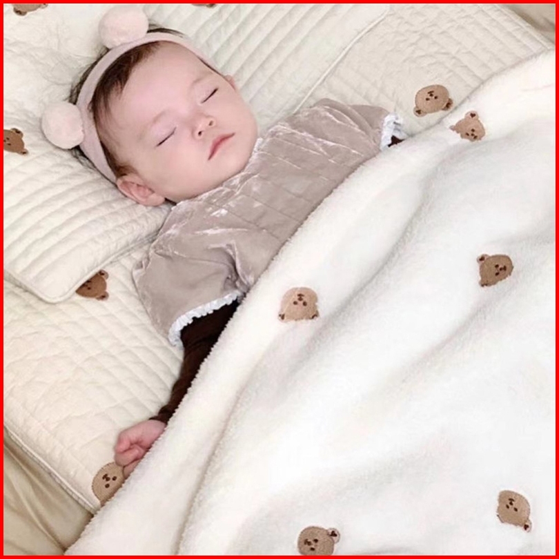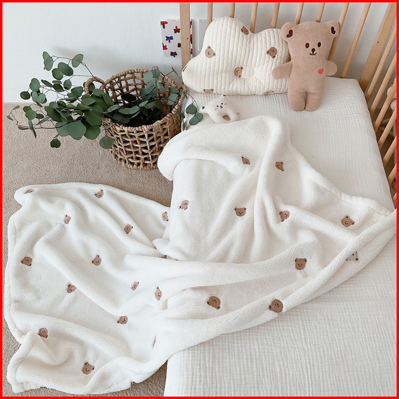 Soft Embroidery Blanket Selimut Bayi Lembut Bayi Motif Bear Import Nyaman Dan Lembut Hanya Selimut Bulu Domba