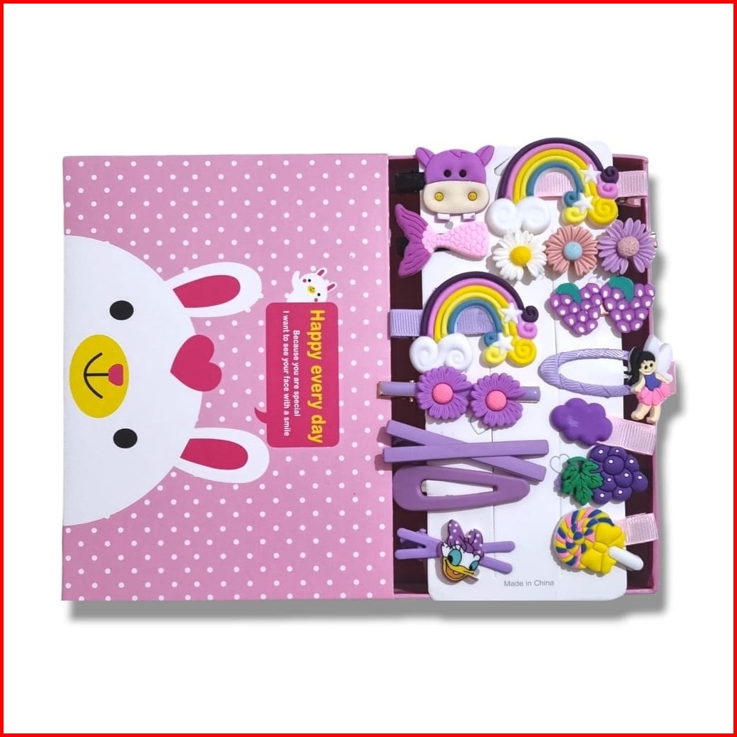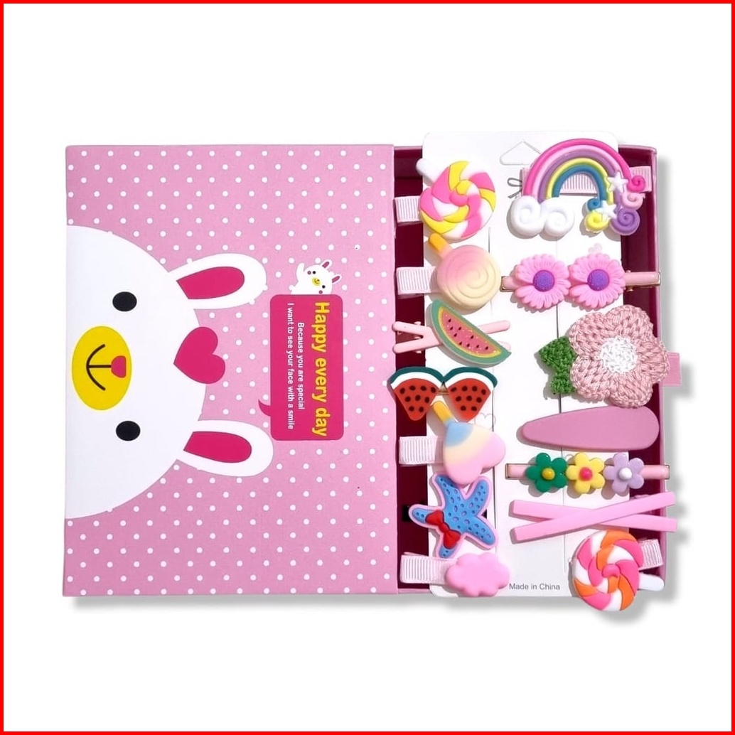 Set Jepit Rambut Anak Wanita 14pcs Paper Bag Box - Aksesoris - Set 14pcs