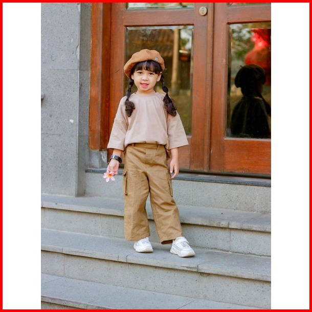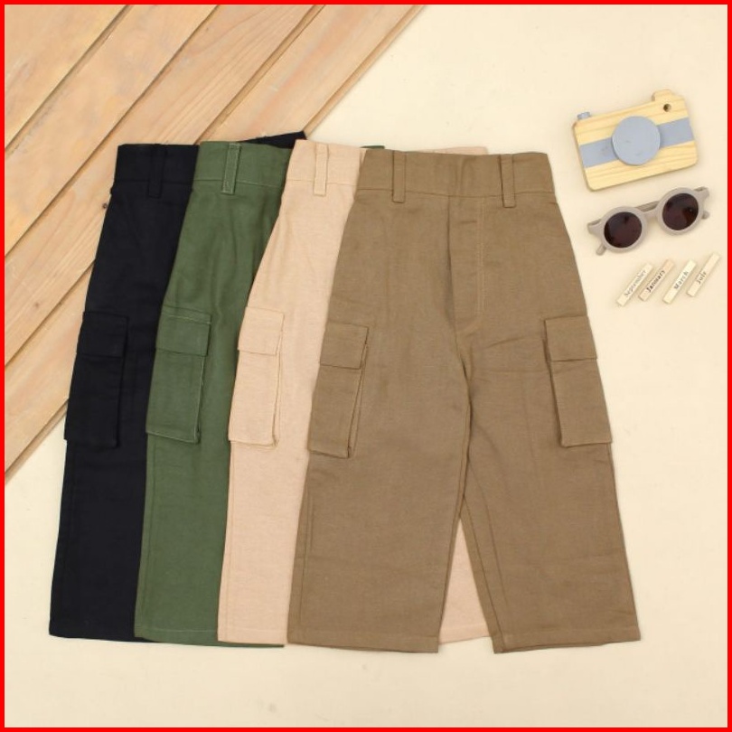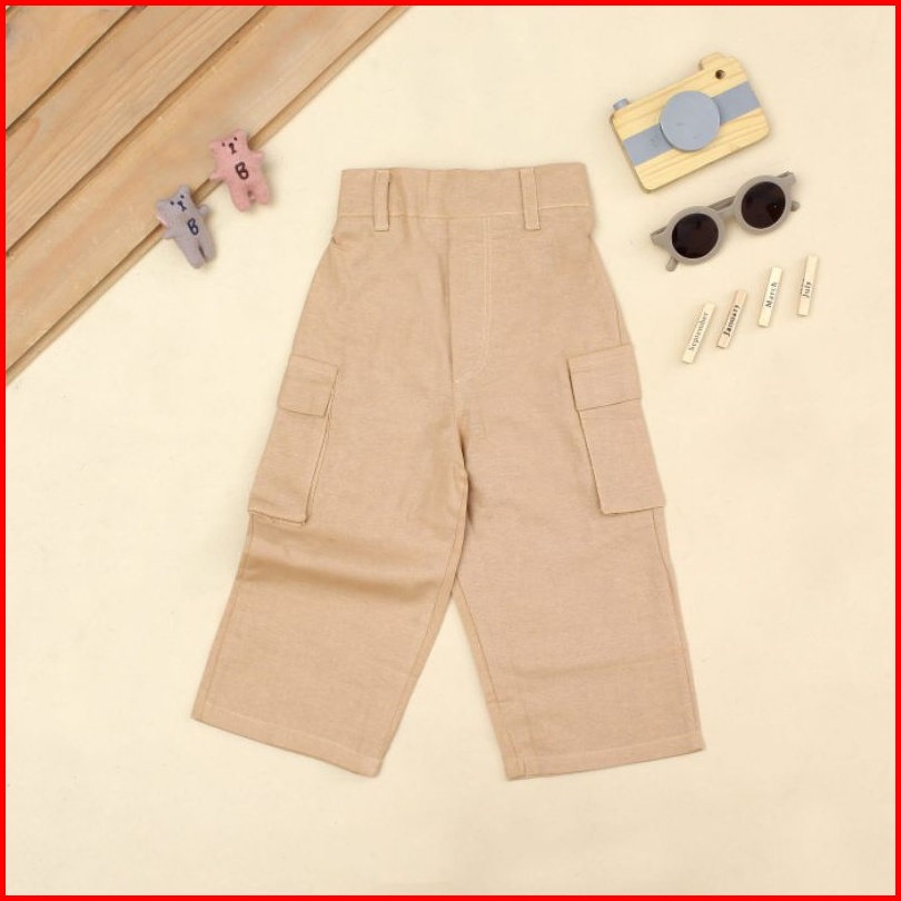 1-5 Tahun Cargo Pants Celana Kargo Panjang Linen Rami