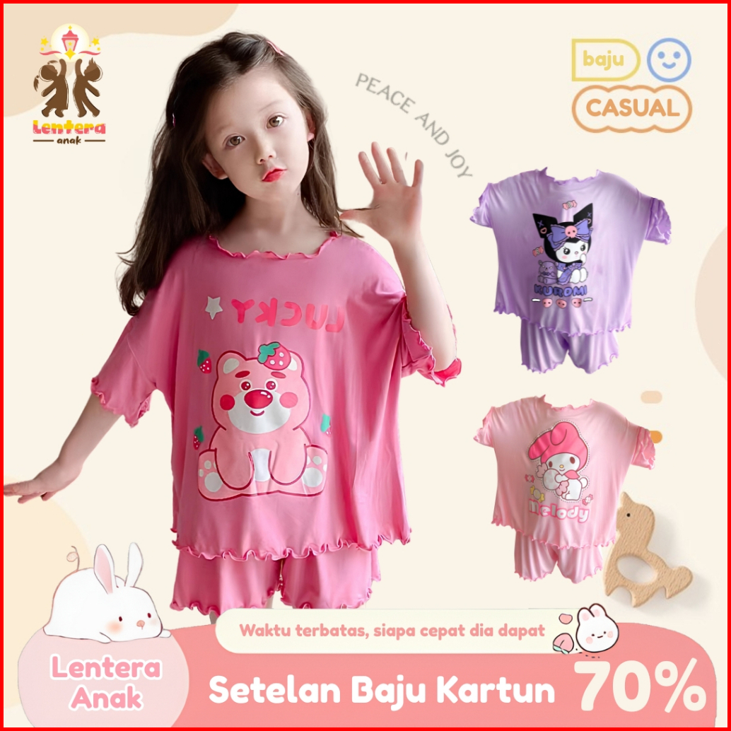 Lentera Anak 1-9 Tahun Piyama Set Melomi 3 Warna Anak Perempuan Motif Melodi Lotso Kuromi Lembut Halus Nyaman Dipakai