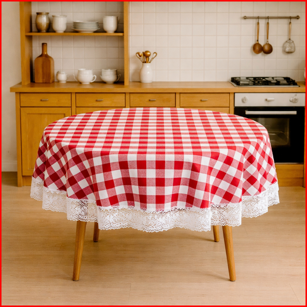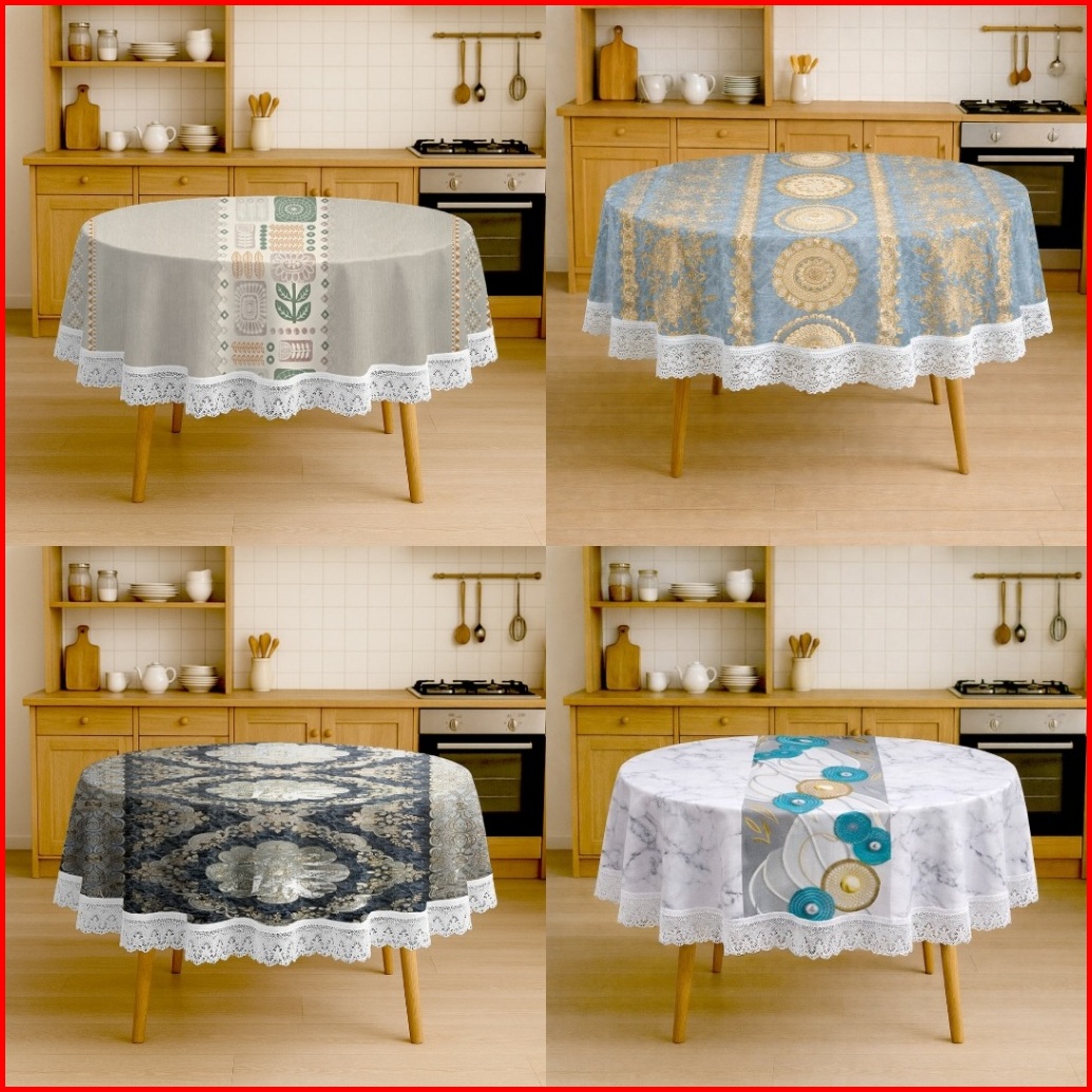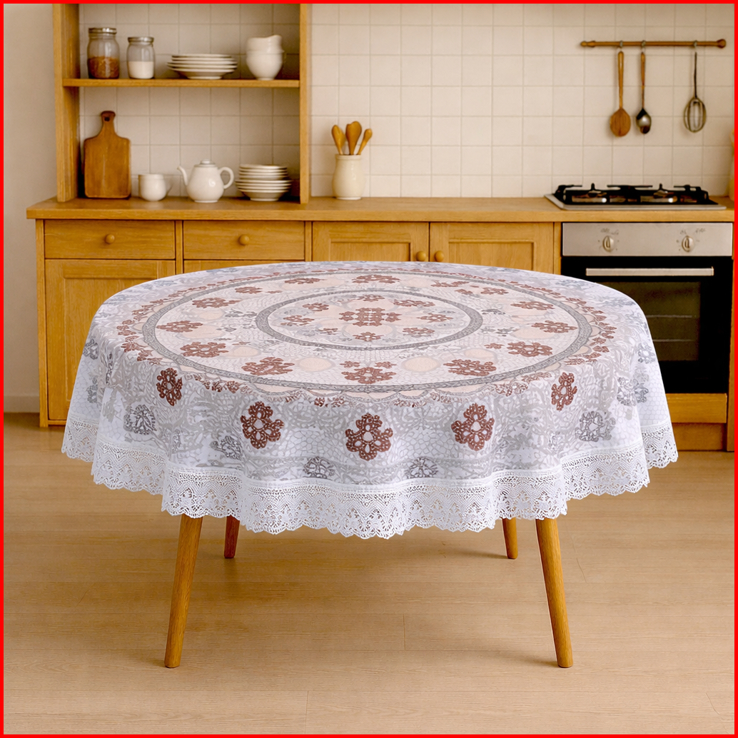 Taplak Bulat Renda Motif Elegant Ukuran Diameter 147 Cm Anti Noda