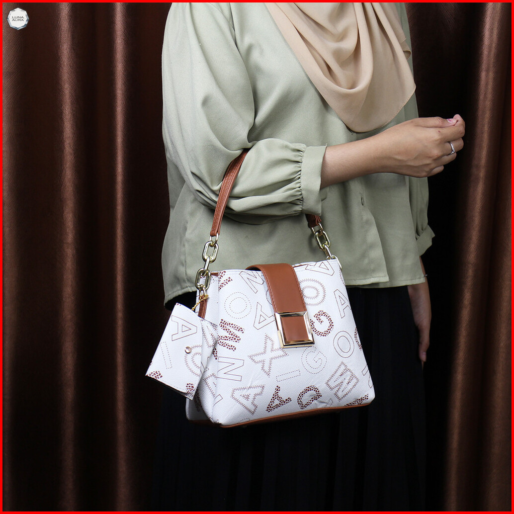 Luna Aura Tas Selempang Jinjing Wanita Adella Motif 3 Ruang Mj 08 Tas Viral Tas Jinjing Kekinian Tas Kerja