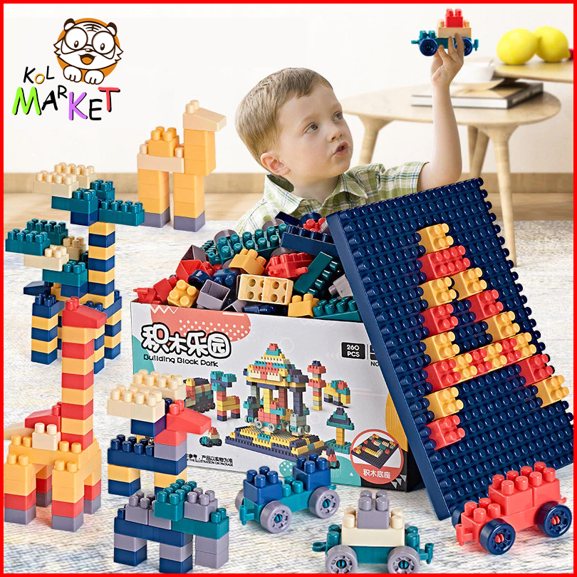 420 Pcs Blok Bangunan Mainan Blok Bangunan Set Blok Bangunan Anak-anak Dengan Kotak Penyimpanan Dan Papan Mainan Edukasi