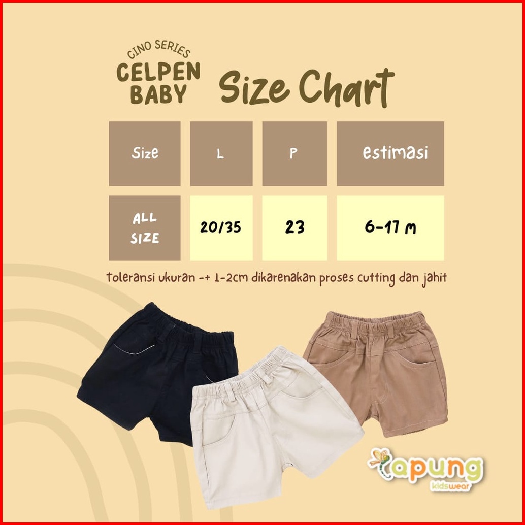 Capung Kidswear Celana Baby Cino Celpen Baby 6-17 Bulan