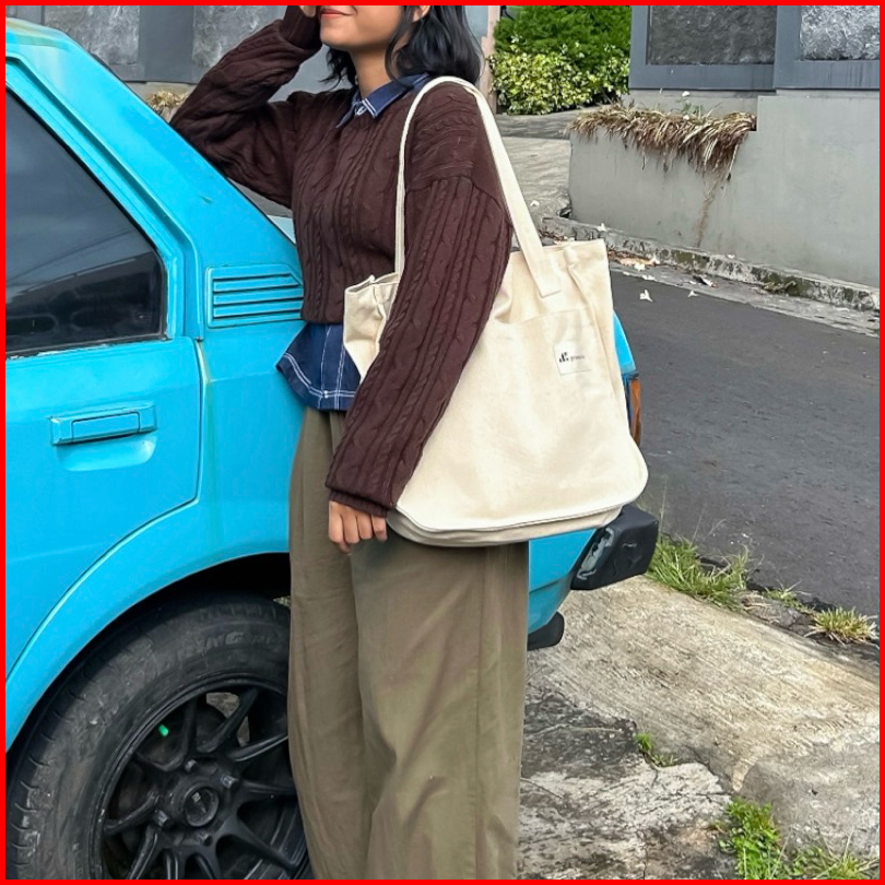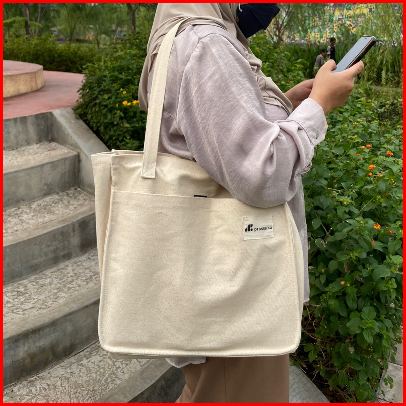 Prassa.ku Riku Bag - Zipper Oversized Totebag Pria Wanita Pocket Kantong Aesthetic Korea Jepang