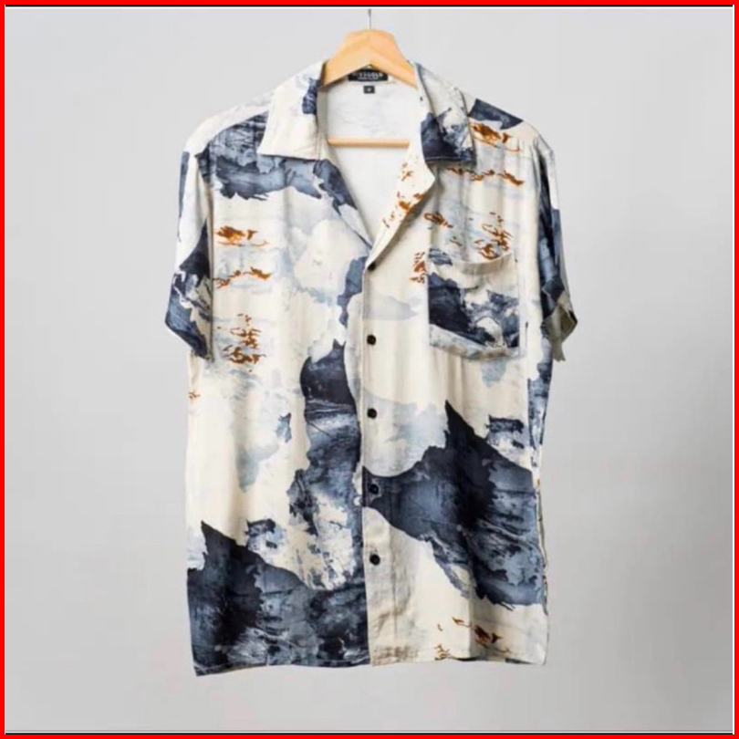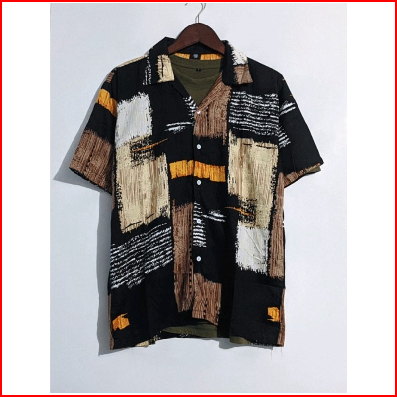 Kemeja Pria Hawai Kemeja Pantai Abstrak Vintage Casual Lengan Pendek Retro Bahan Rayon Viscose Import Adem