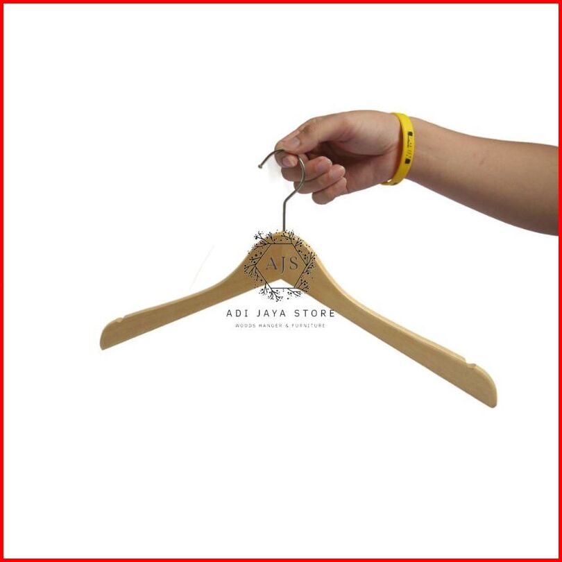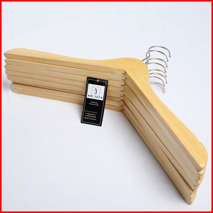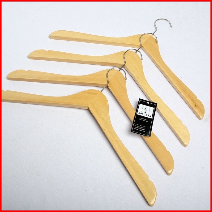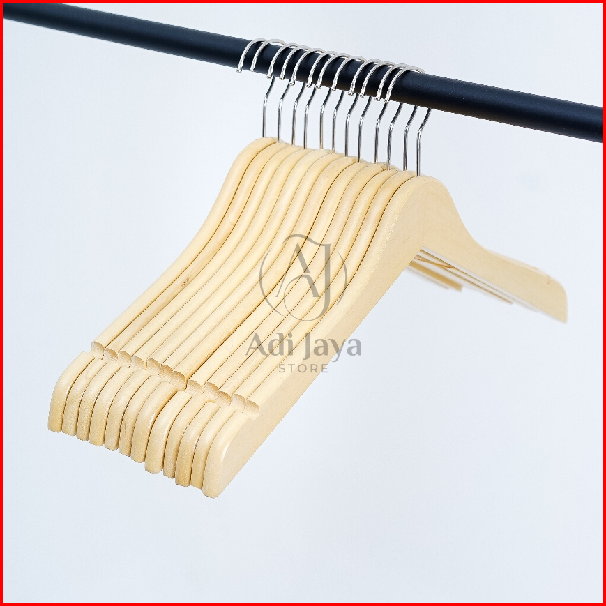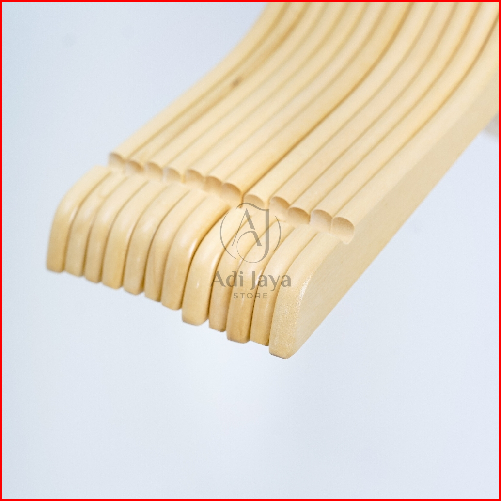 12 Pcs 1 Lusin Hanger Kayu Natural Kualitas Premium Gantungan Baju Kayu Premium - Dewasa