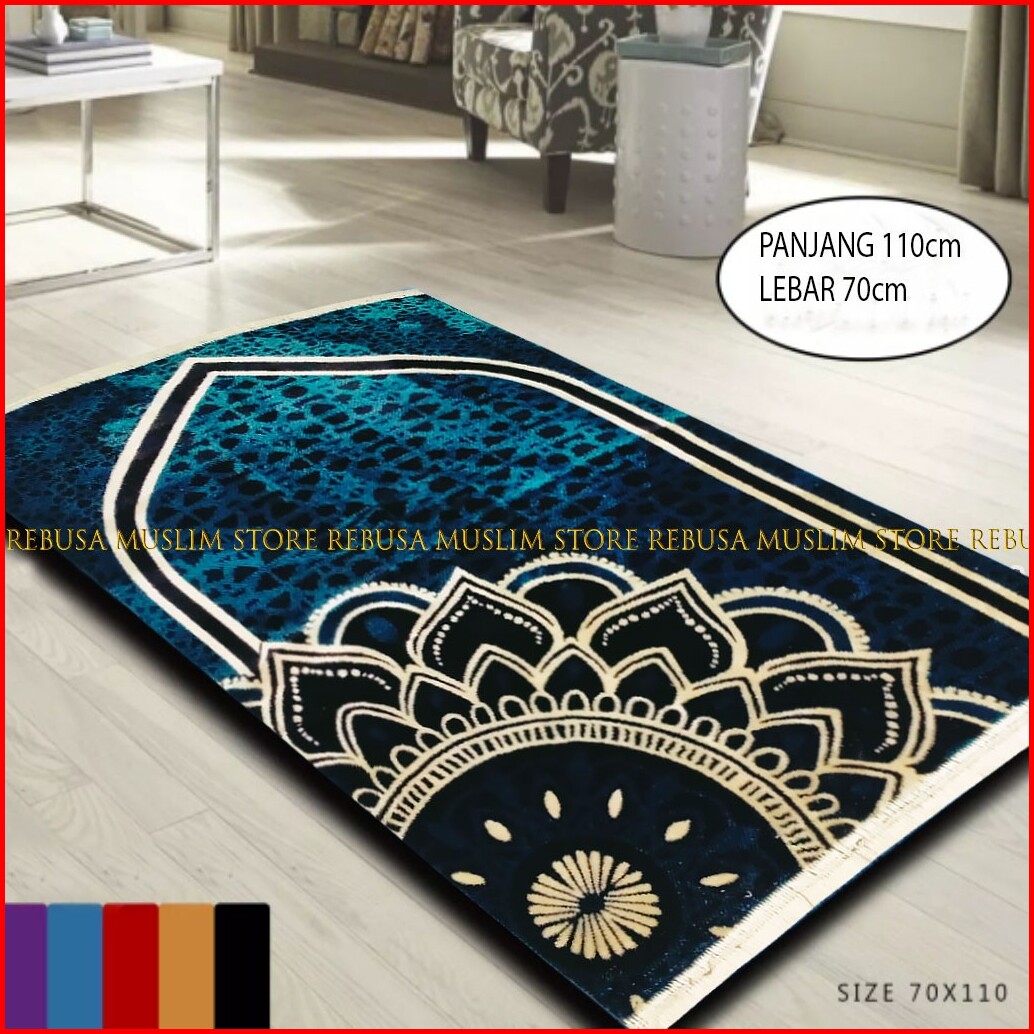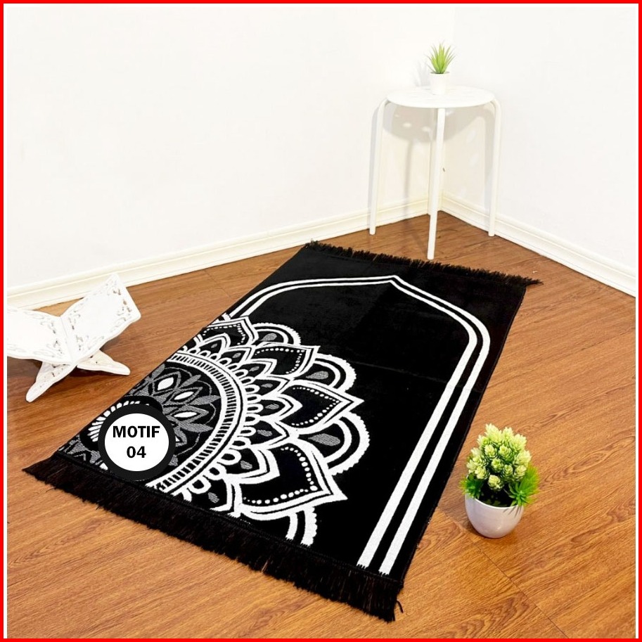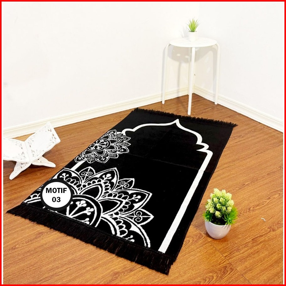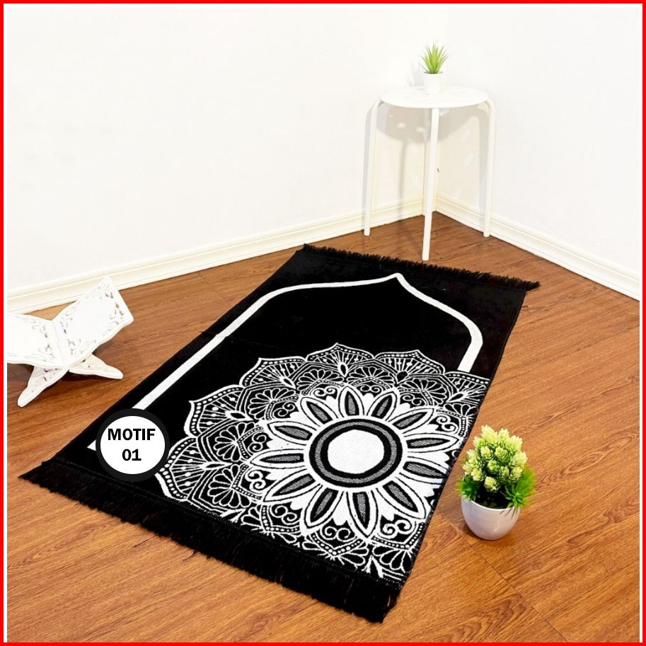 Sajadah Turki Tebal Hitam Motif Bunga Ukuran 110x70cm Murah By Rebusa Muslim Store