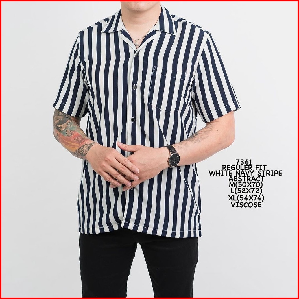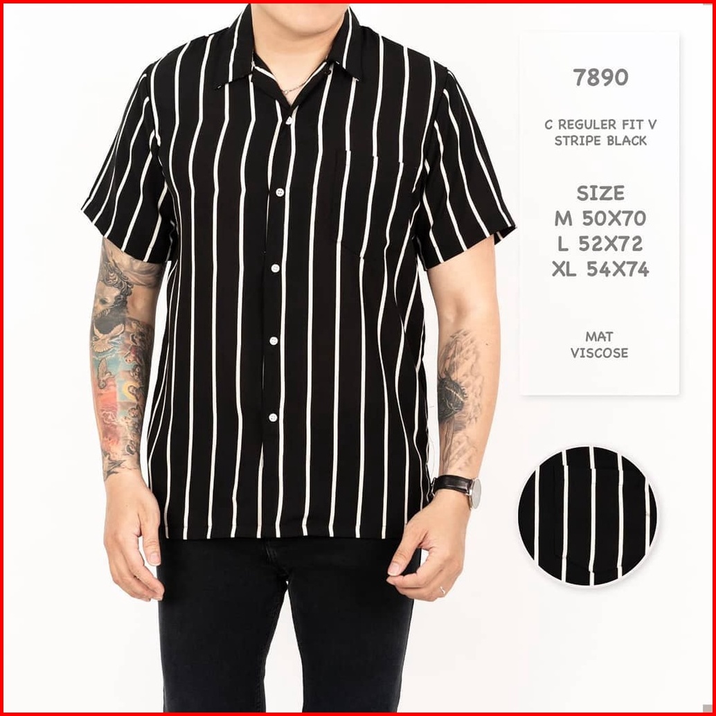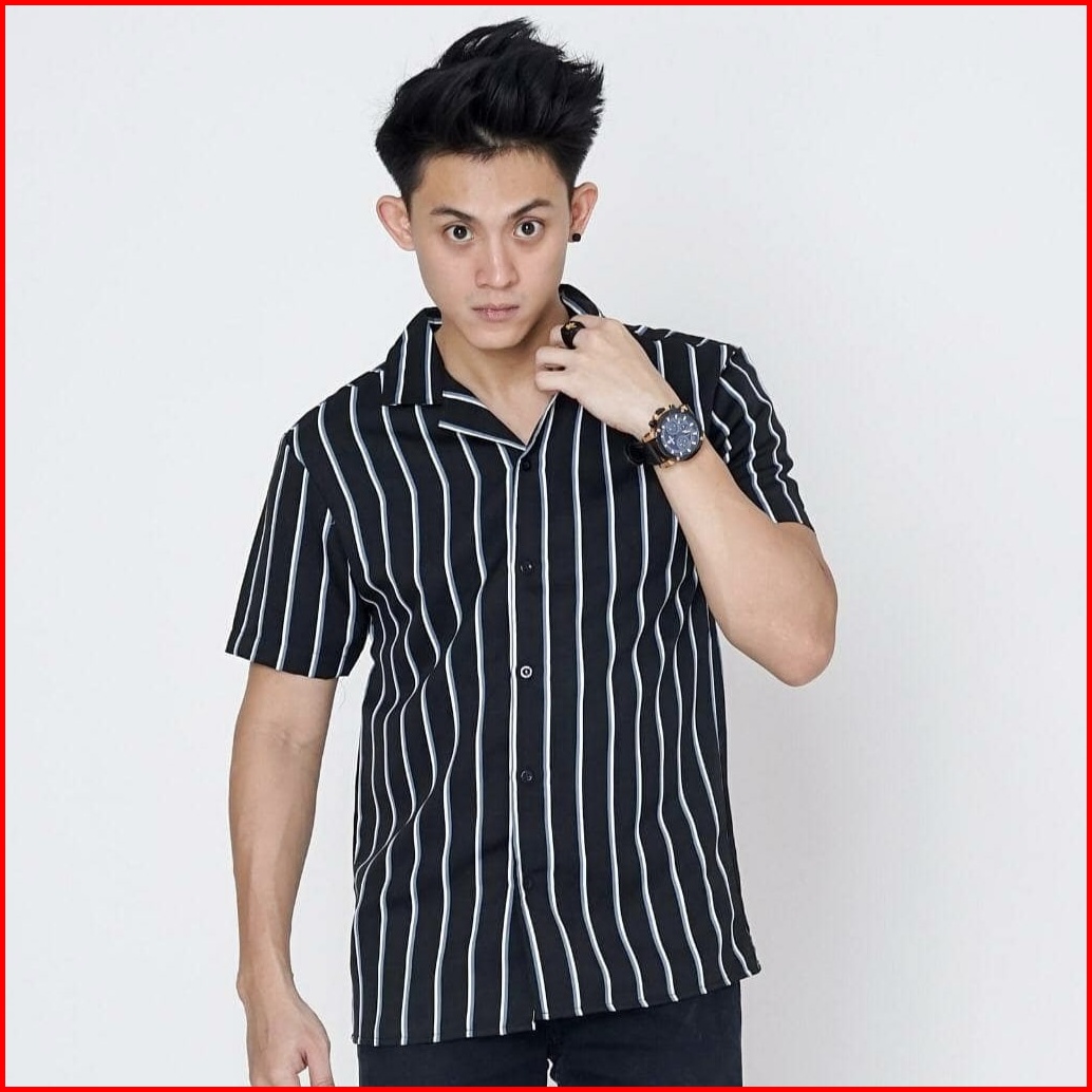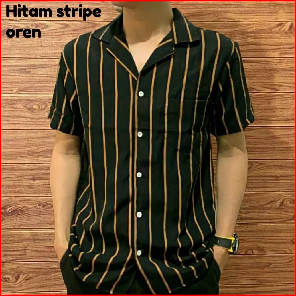 Terbaru Kemeja Strip Pria Kemeja Salur Lengan Pendek Garis Garis