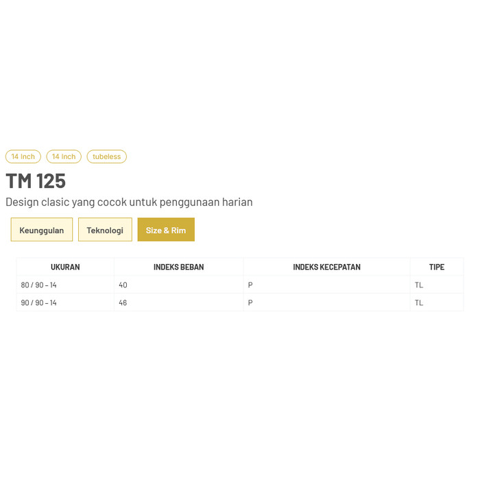 ( TM125 !!) TOMIMOTO Ban Motor WET LOOK MATIC RING 14 TUBELESS ( CEK VARIAN !! ) 80 90 FREE PENTIL