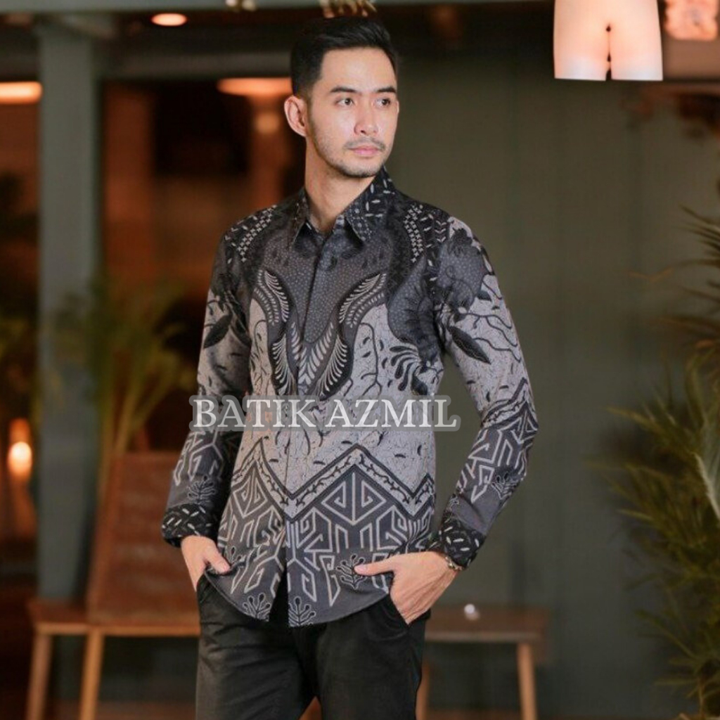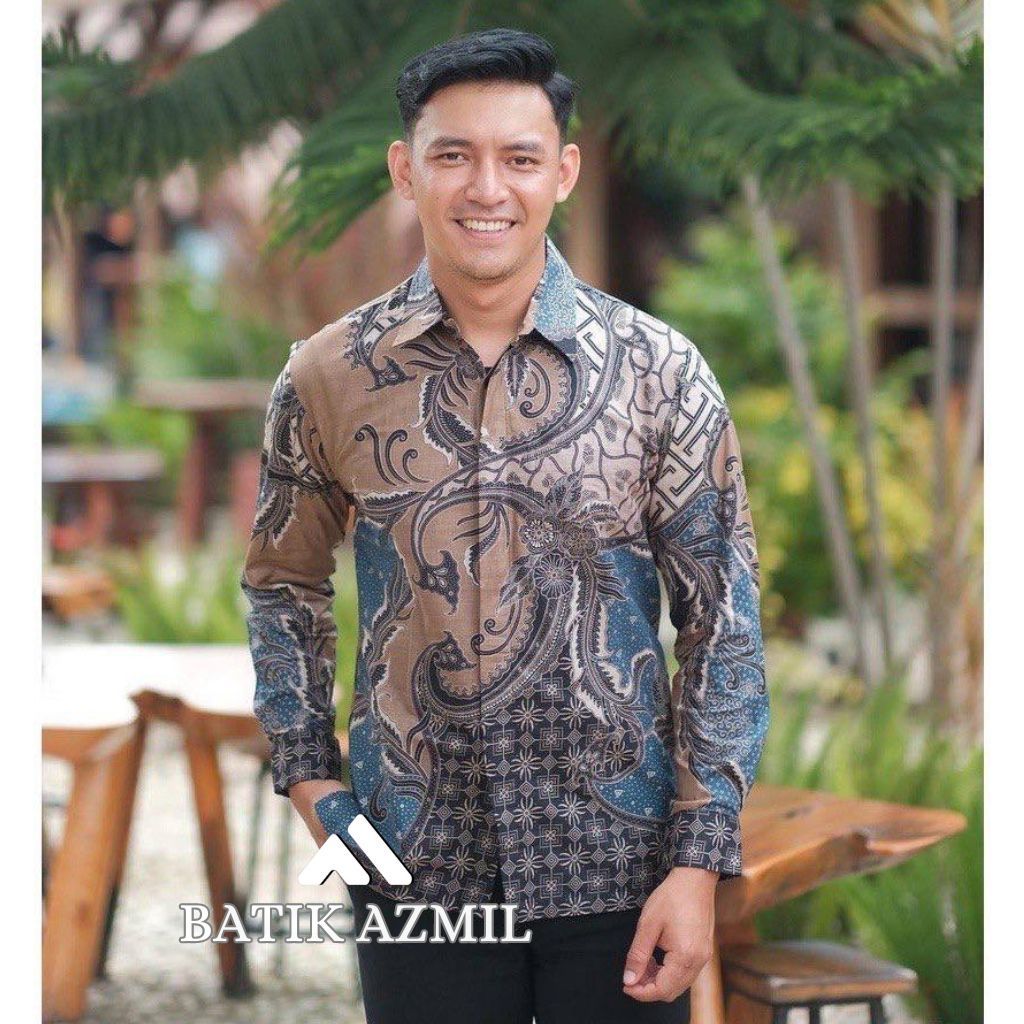 (Gratis Ongkir) Batik Pria Lengan Panjang BATIK AZMIL HRB026 motif KERATONAN Kode 002 size M L XL XXL