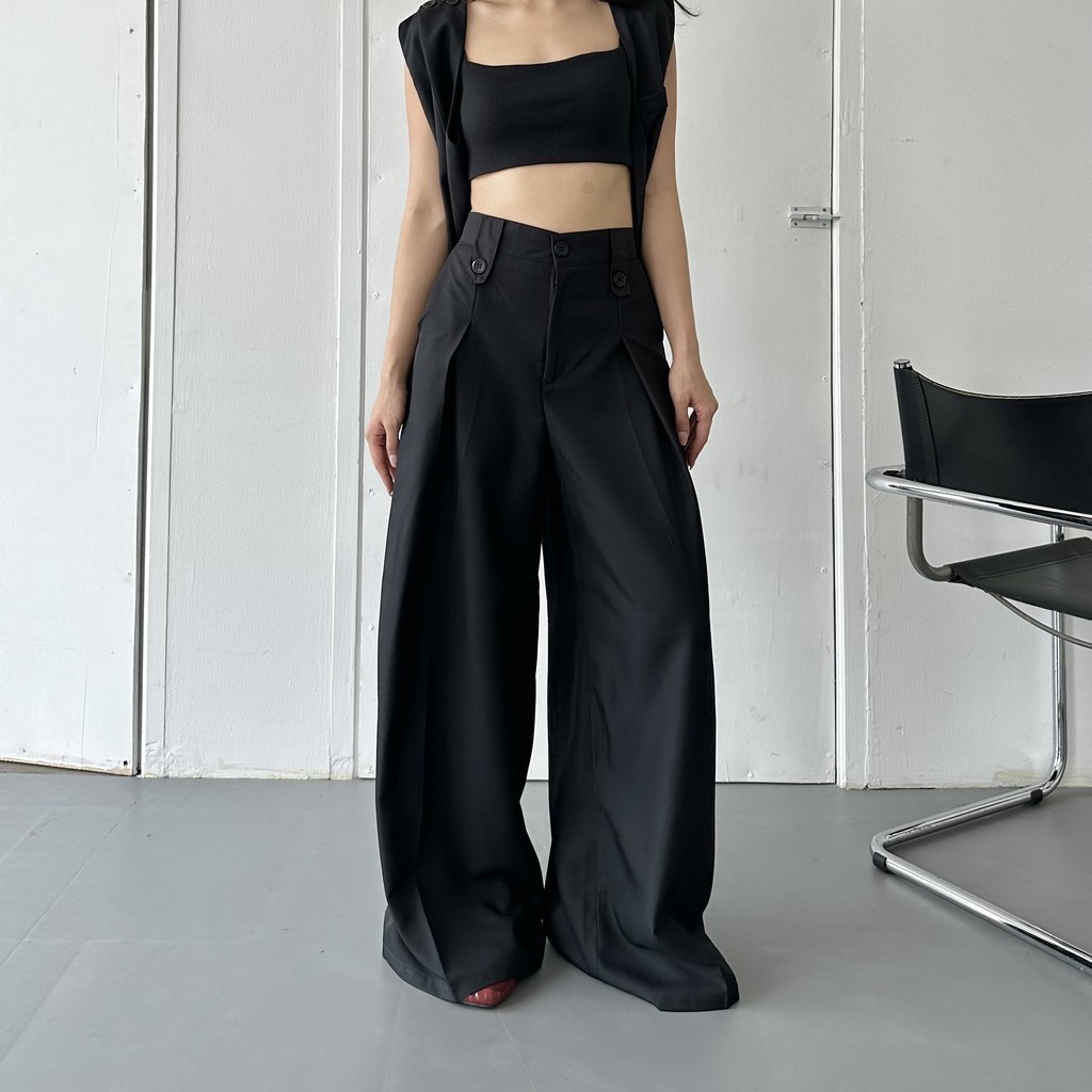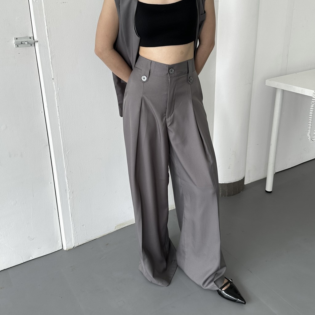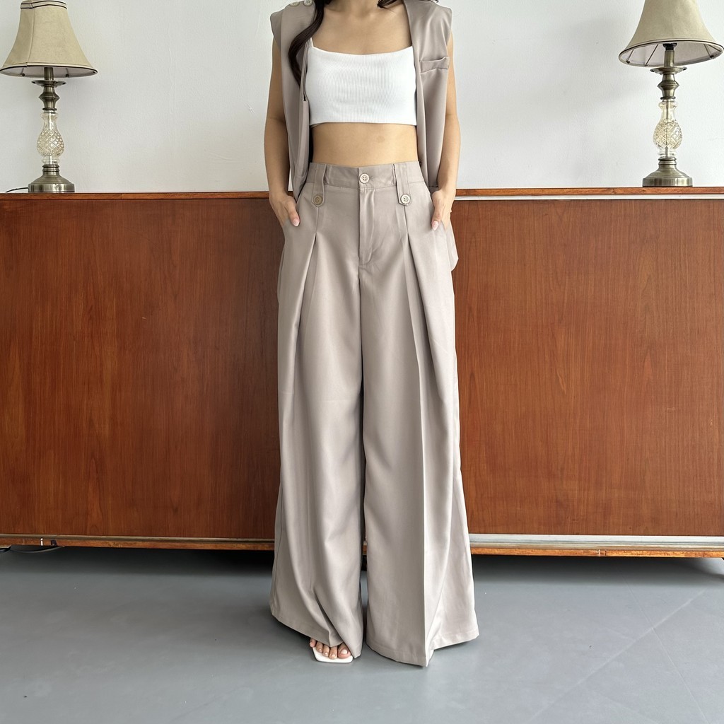 Celana Panjang Wanita Wide Highwaist Pants Basic Korean Long Trousers Estetik Kekinian