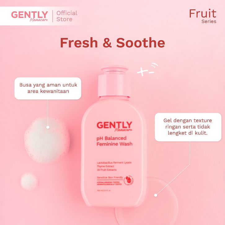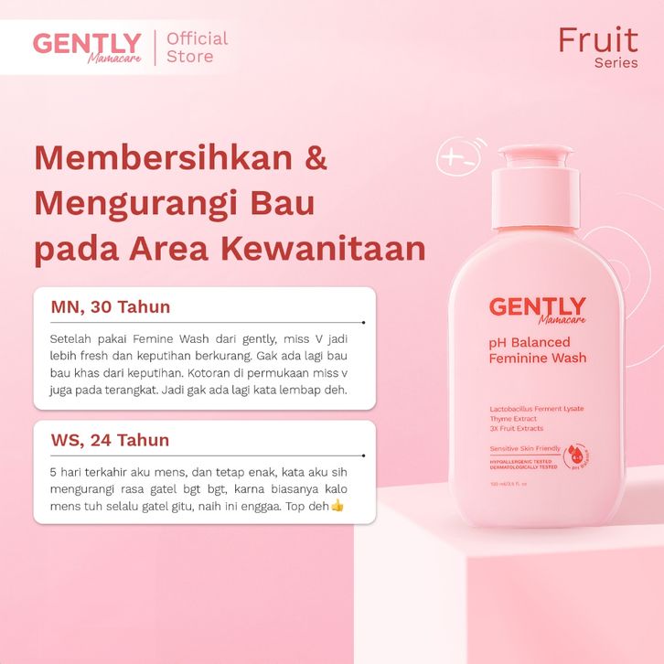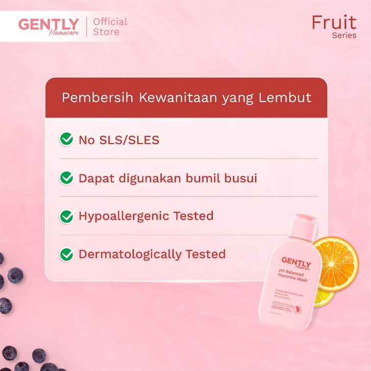 GENTLY MAMACARE PH BALANCED FEMININE WASH FRUIT SERIES WITH 3X FRUIT EXTRACT PEMBERSIH KEWANITAAN VIRAL TERLARIS