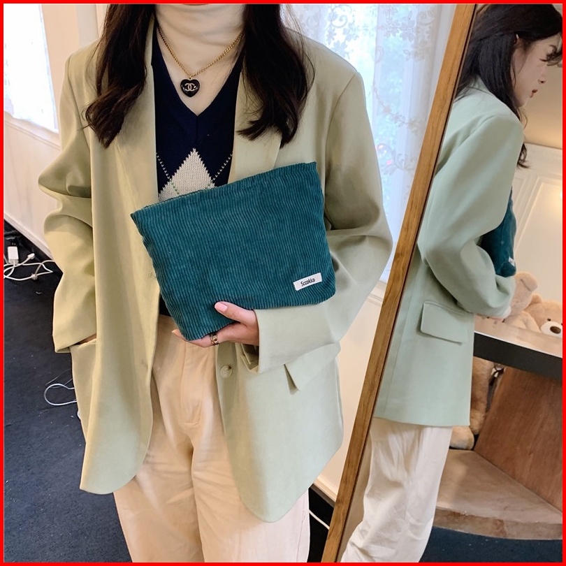 Makeup Bag Pouch Kosmetik Travel Organizer Tas Clutch Dompet Multifungsi Serbaguna Kain Knit Rajut Tebal Premium Fashion
