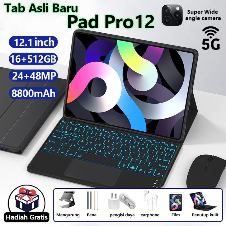 Tablet PC Pad Pro 12 Asli Baru 10.1 Inci 5G Tablet Android 16GB+512GB promo trade in tab Dual SIM Tablet Untuk Anak