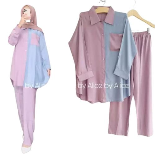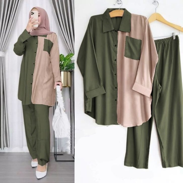 Setelan Cowok Basic Daily One Set Baju Dan Celana Set Wanita Kekinian Setelan Kemeja Polos Kombinasi