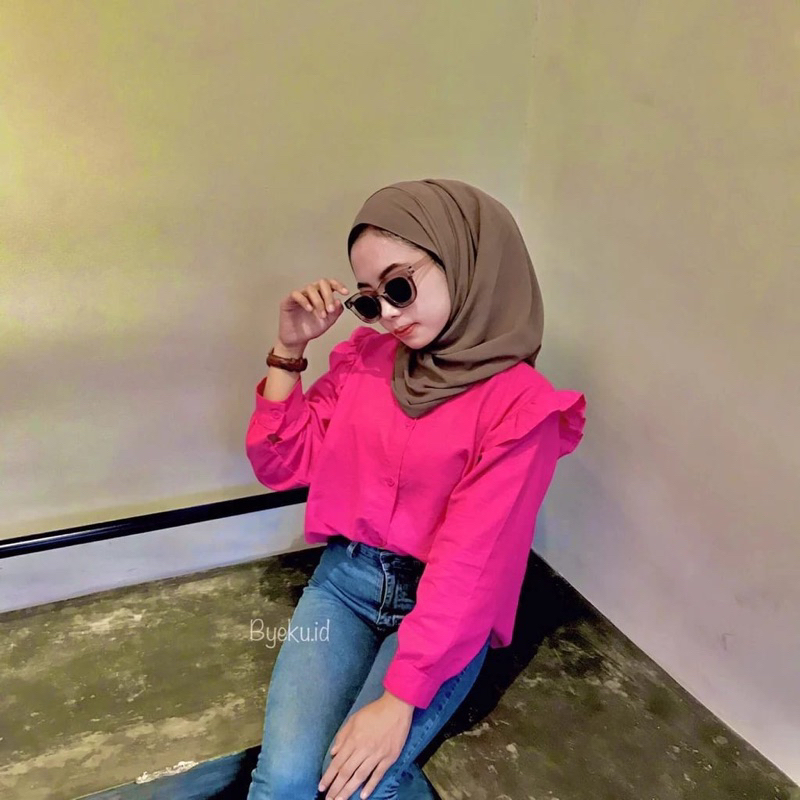(Gratis Ongkir) Yurim Blouse Ruffle - Atasan Wanita - Kemeja Linen Basic Lengan Panjang