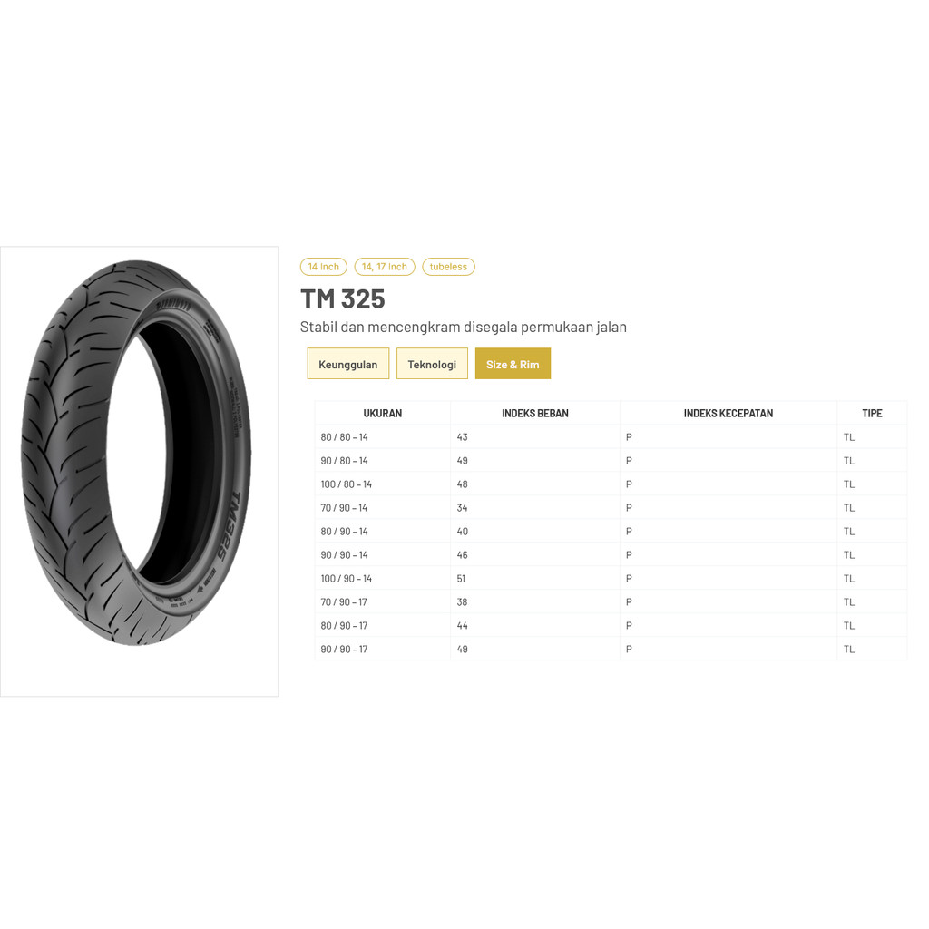 ( TM325 - RING 17 )TOMIMOTO 80 90 17 WET LOOK BELAKANG SUPRA REVO KARISMA BEBEK TUBELESS FREE PENTIL