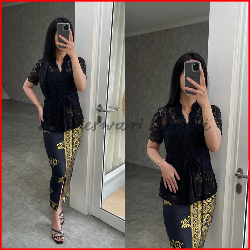 Kebaya Bali Set Brukat Talipita Hitam