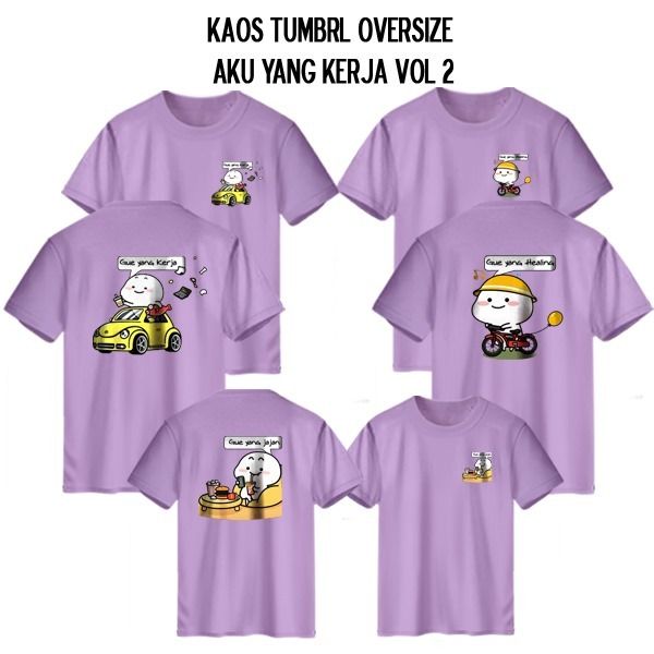 Kaos Couple Keluarga Ayah Ibu Anak Motif Pentol Yang Kerja Yang Healing Yang Jajan Warna Lilac vol 2
