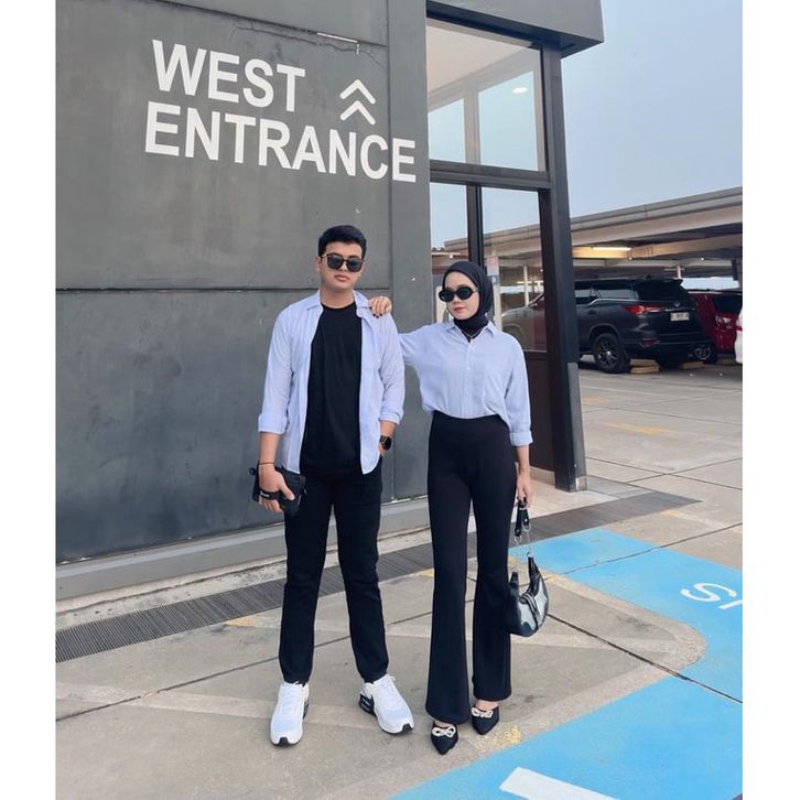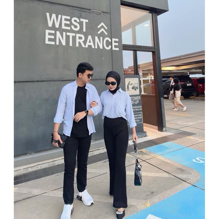 Minha Couple Shirt Kemeja Salur Pria Wanita Korean Style - Baju Couple Kekinian 2 Pcs
