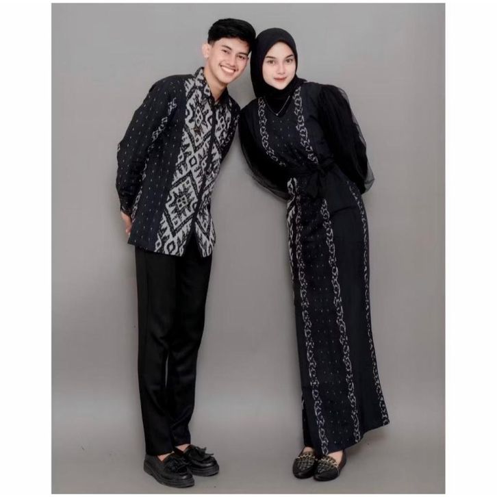 BAJU COUPLE PASANGAN KONDANGAN HITAM TENUN ETNIK KOMBINASI TERBARU