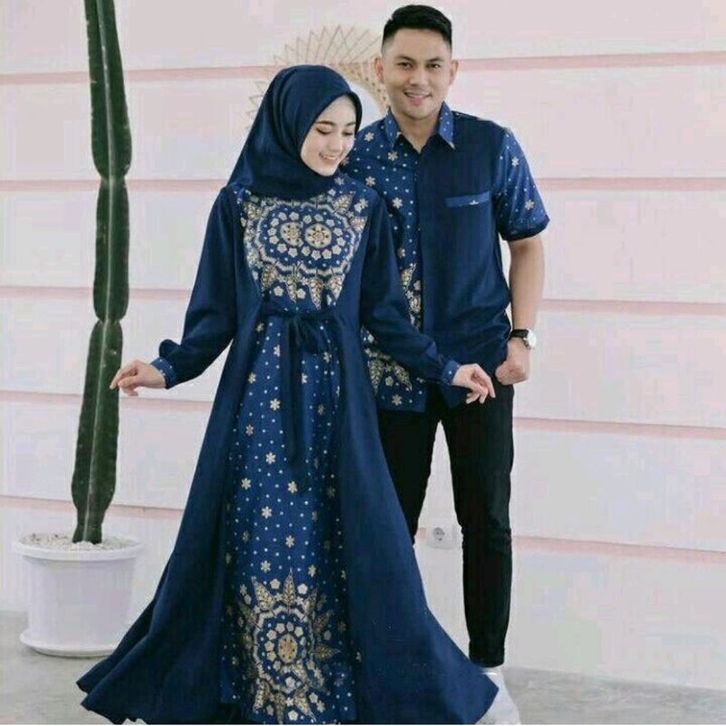Couple keluarga syari muslimah dress gamis couple baju couple pasangan gaun pesta muslimah batik