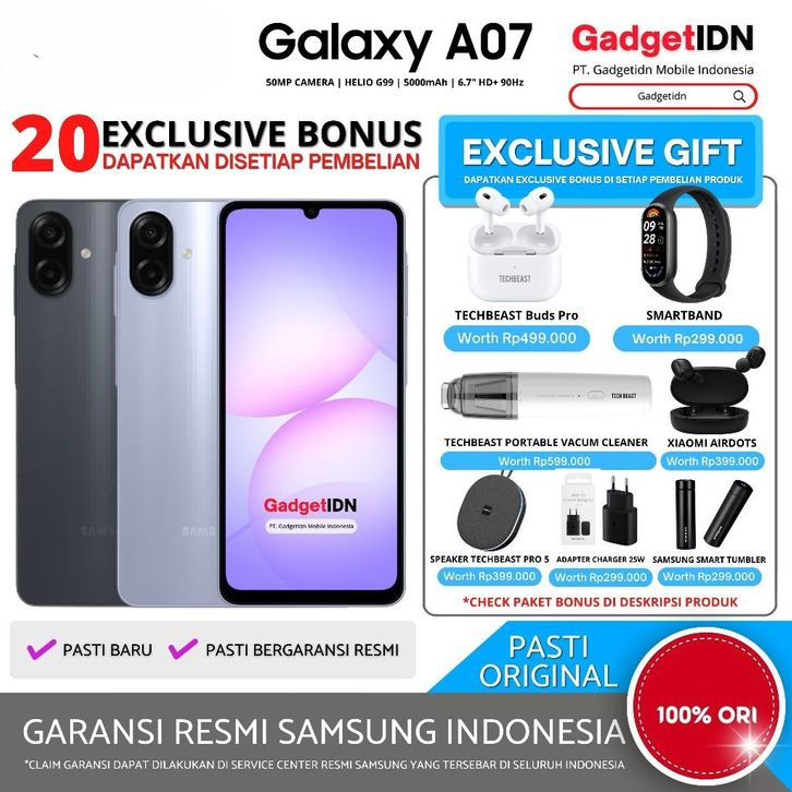 [Mall] SAMSUNG GALAXY A07 8/256GB HP ORIGINAL GARANSI RESMI FREE 20 BONUS EXCLUSIVE GIFT TERBARU