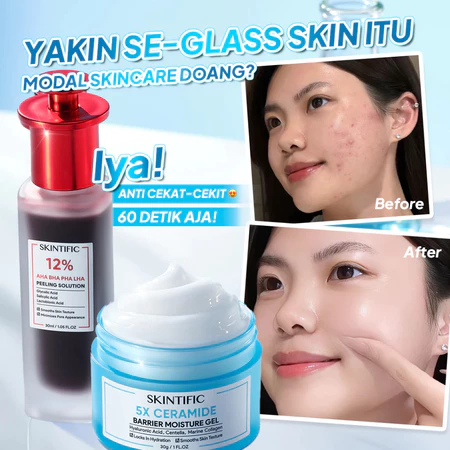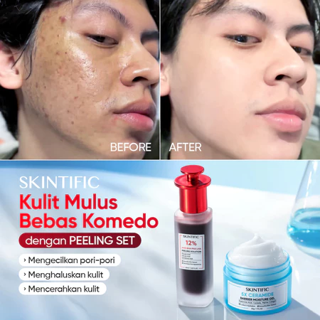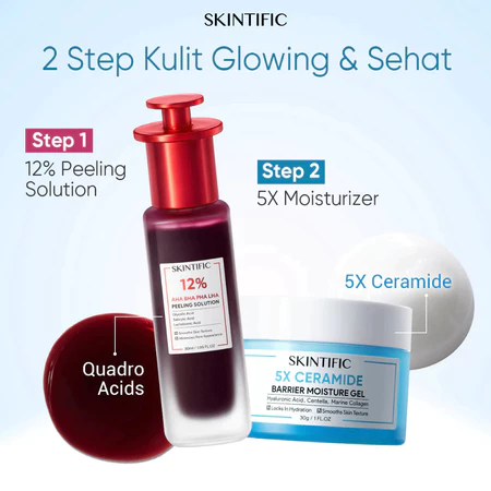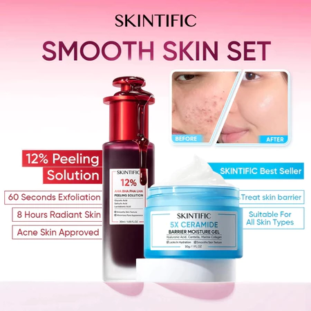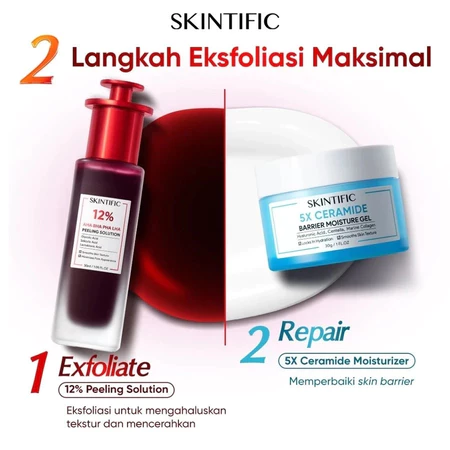 SKIINTIFIC - 2PCS Packet 12% AHA BHA PHA LHA Peeling Solution 30ml & 5X Ceramide Barrier Moisturizer Gel 30g