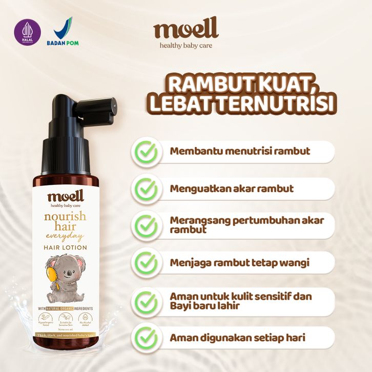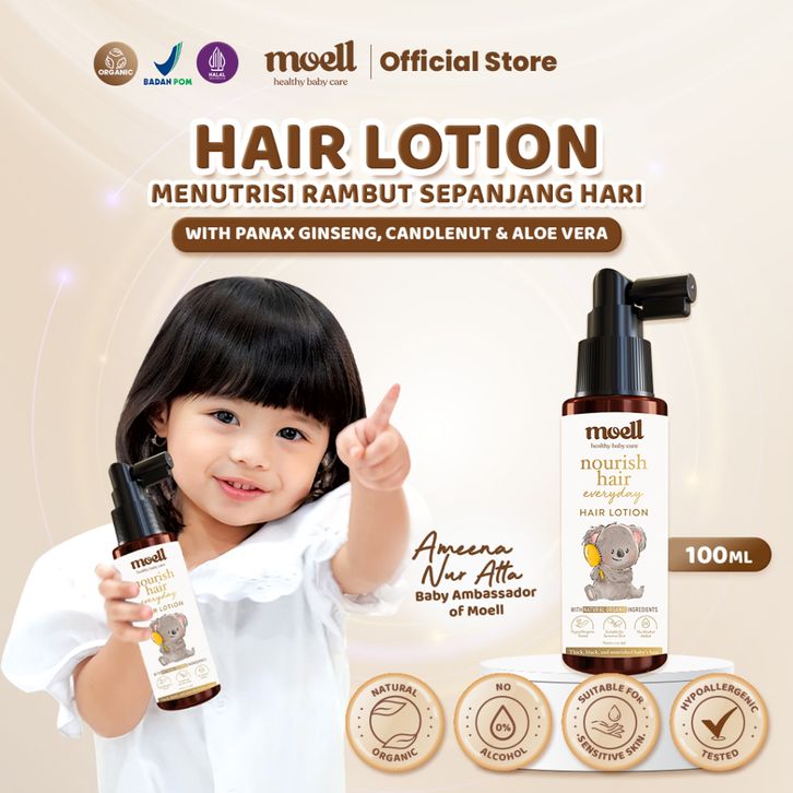 Moell Hair Lotion Baby With Panax Ginseng & Calendula Oil 100 ml - Rambut Kuat, Lebat & Ternutrisi Sepanjang Hari #Hairc