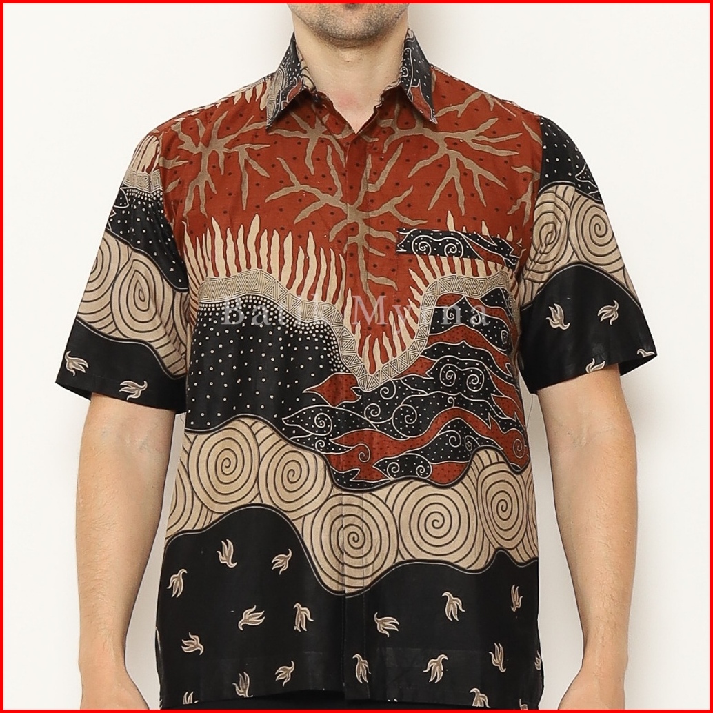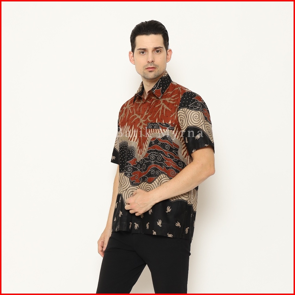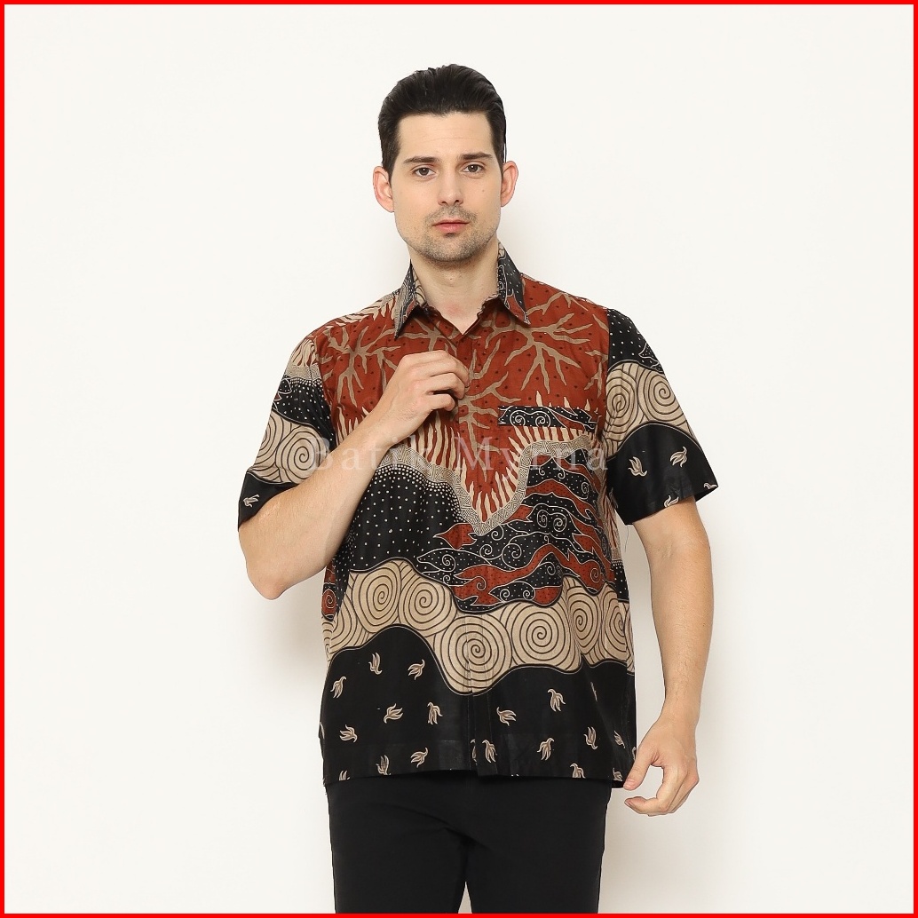 Batik Myrna - Kemeja Batik Lengan Pendek Pria Baju Atasan Motif Mega Mendung Terracotta