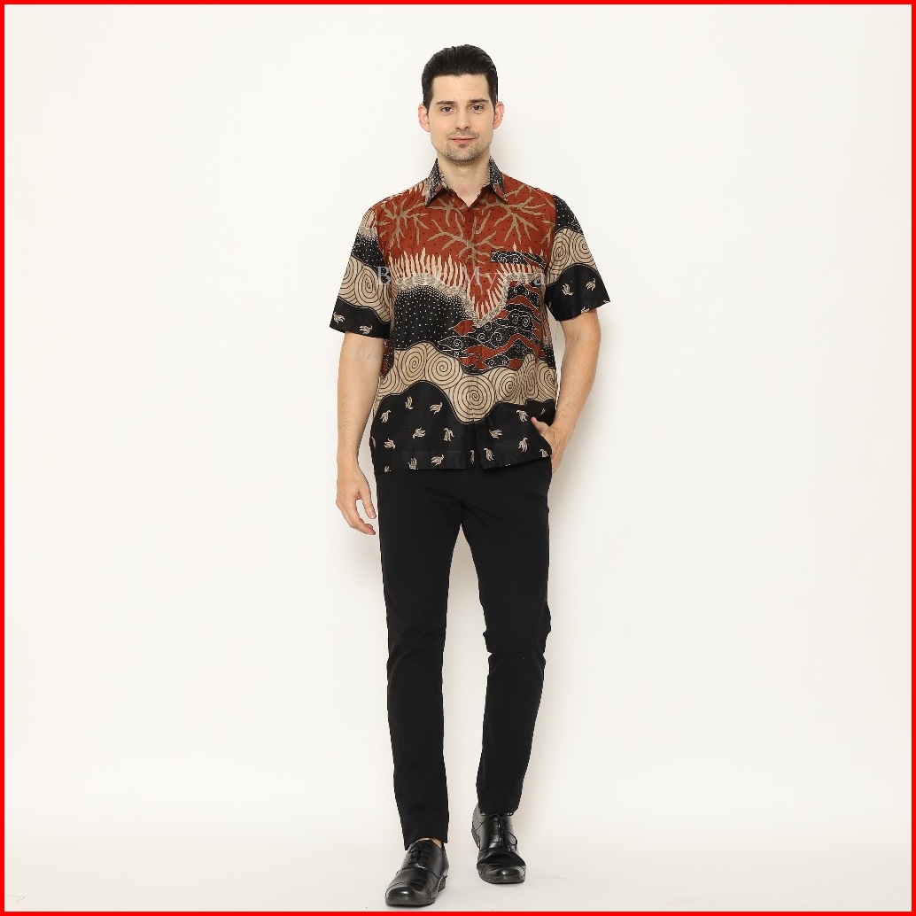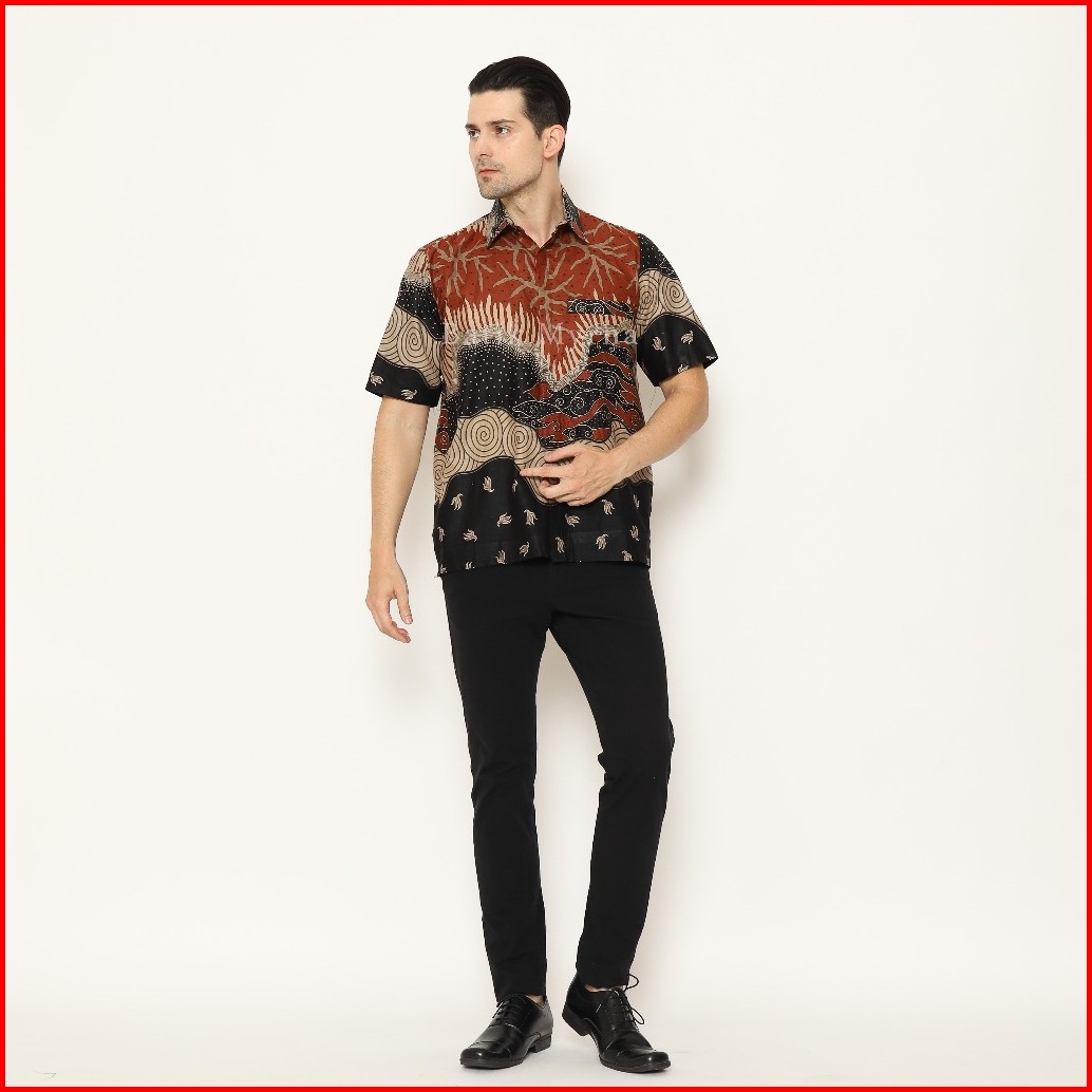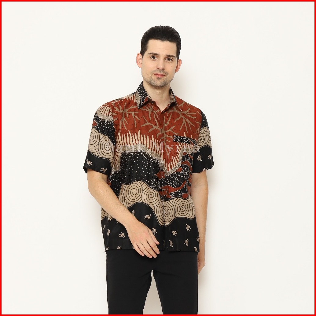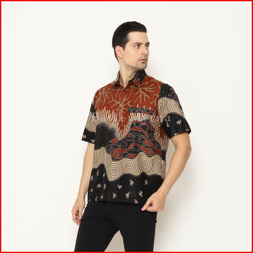 Batik Myrna - Kemeja Batik Lengan Pendek Pria Baju Atasan Motif Mega Mendung Terracotta