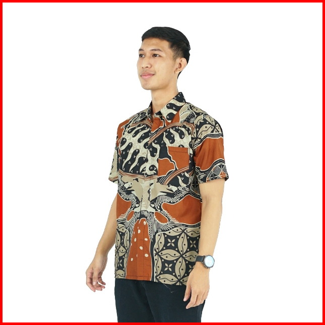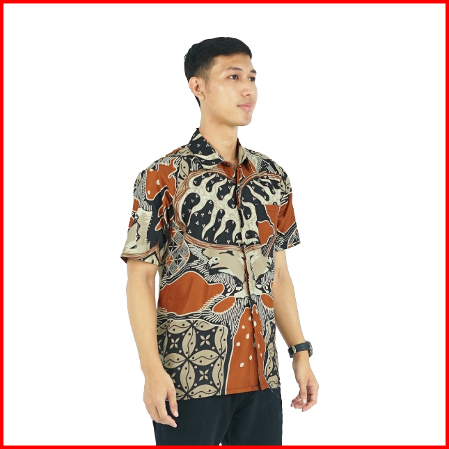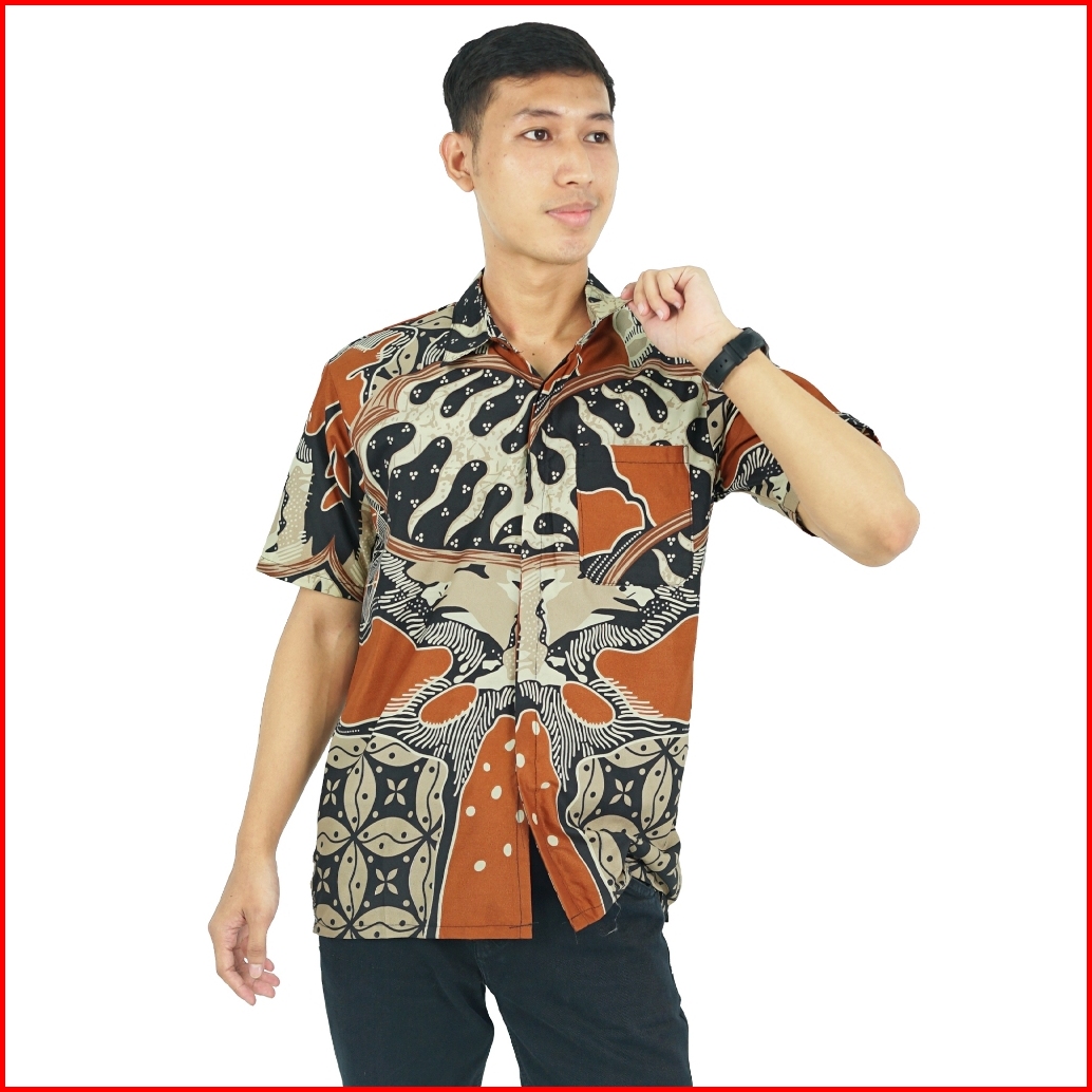 Batik Trusmi Kemeja Lengan Pendek Hem Batik Pria Motif Kombinasi Kiandra Orange Bul