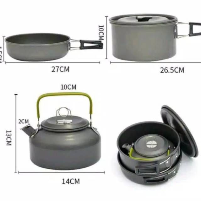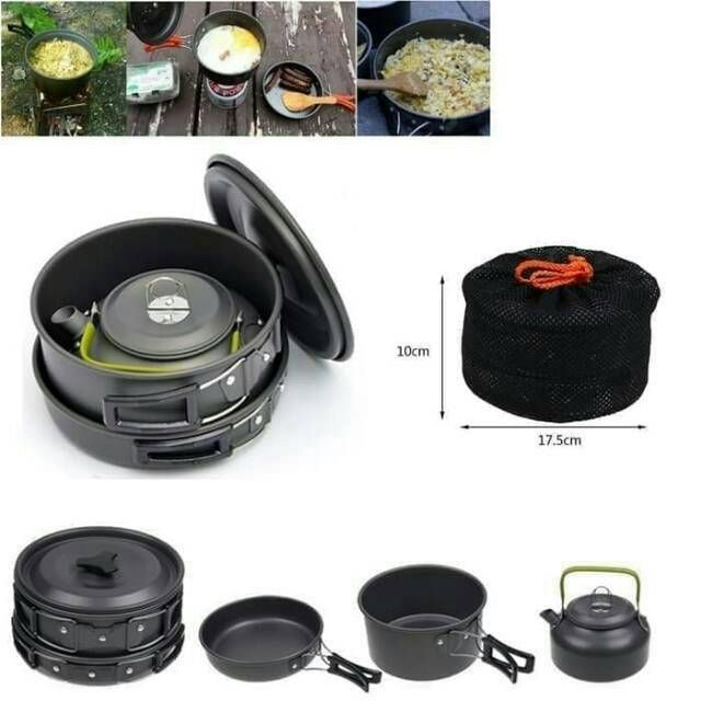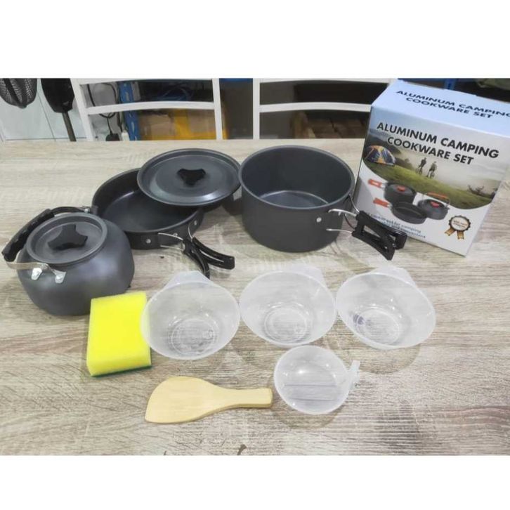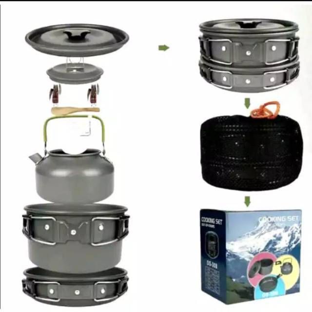 [PROMO] Alat Masak Camping Full Set - Cooking Set DS 308 Sudah Ada Teko Air - Nesting Traveling