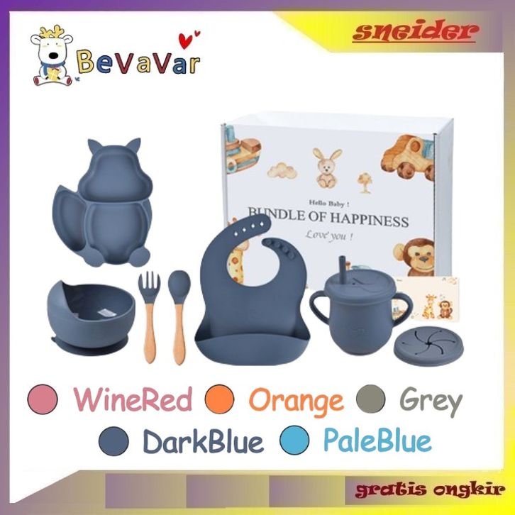BEVAVAR 8 in 1 Tempat Makan Bayi Silicone Set / Mangkok Piring Sendok Garpu Bib Cup Silikon Peralatan Makan Bayi Set
