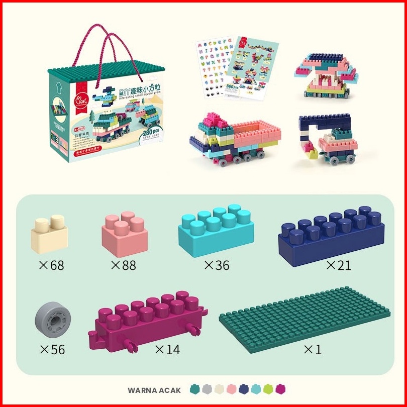 Mainan Balok Susun Anak Block Edukasi Bricks Isi 280 Pcs Blok Toys Diy