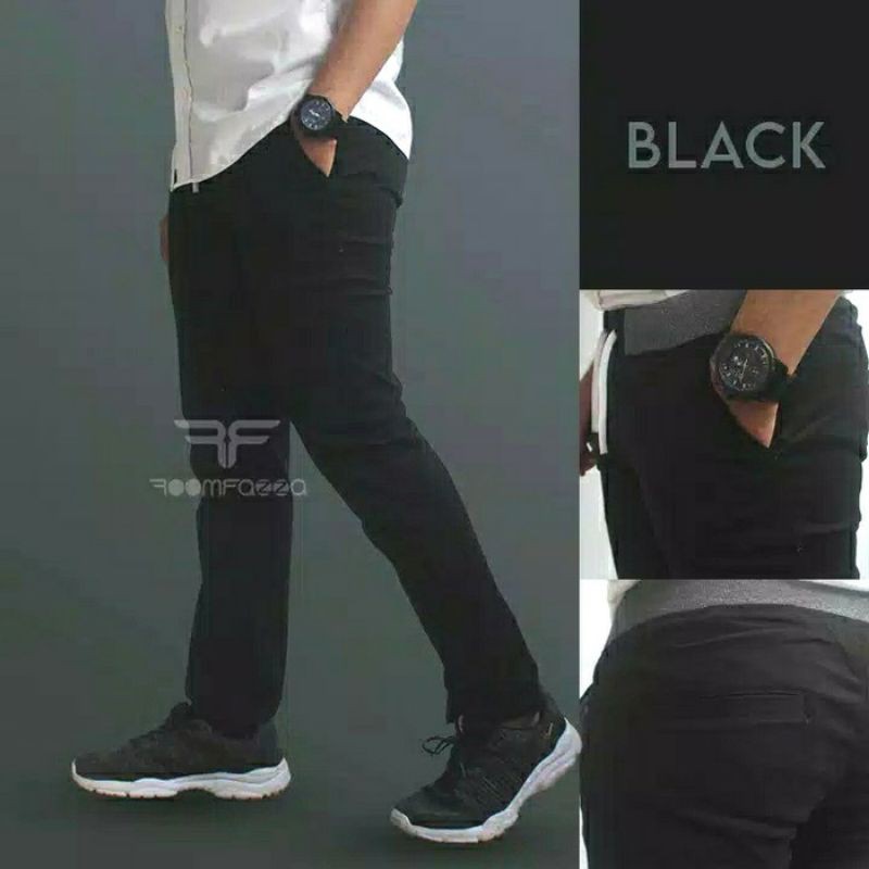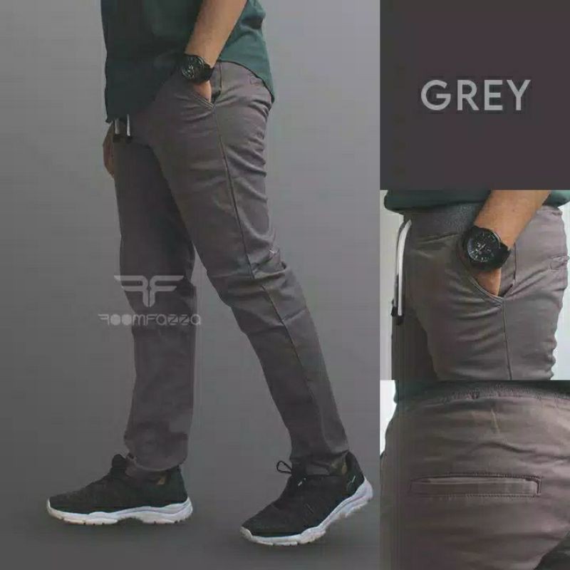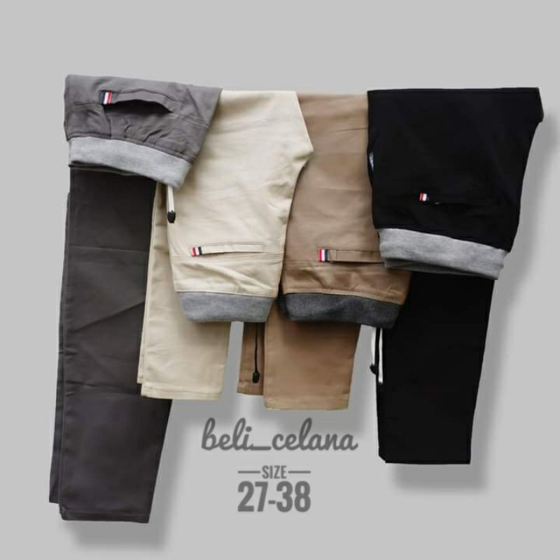 (Gratis Ongkir) Celana Chino Panjang Pria Pinggang Kolor / Rip Karet Celana Panjang Pria Size 27 sampai 38