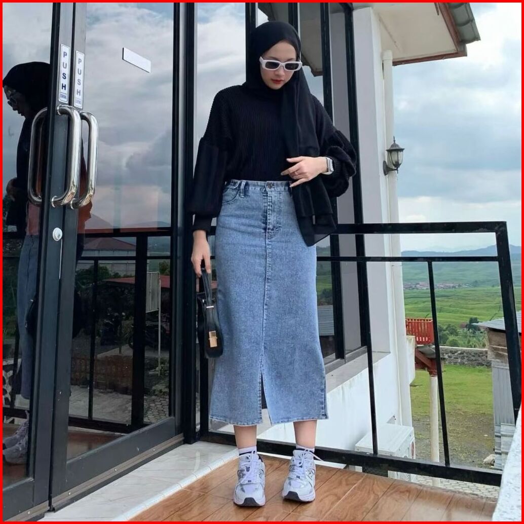 Rok Jeans Wanita Theana Rok Jeans Denim Span Rok Wanita Korean Style