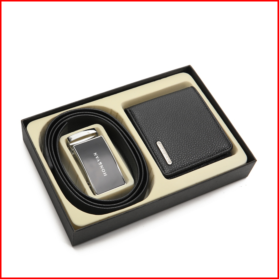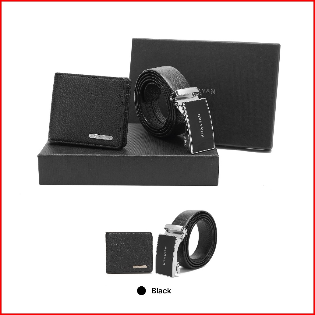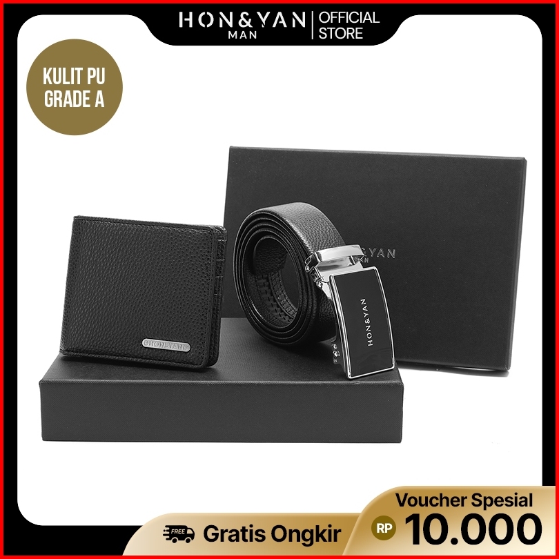 Honyan Man Set Kombinasi Dompet Pu Dan Sabuk Kulit Sapi Pria Dapat Dilepas Dan Dipotong Pendek - 1 Set Wallet Dan Belt P
