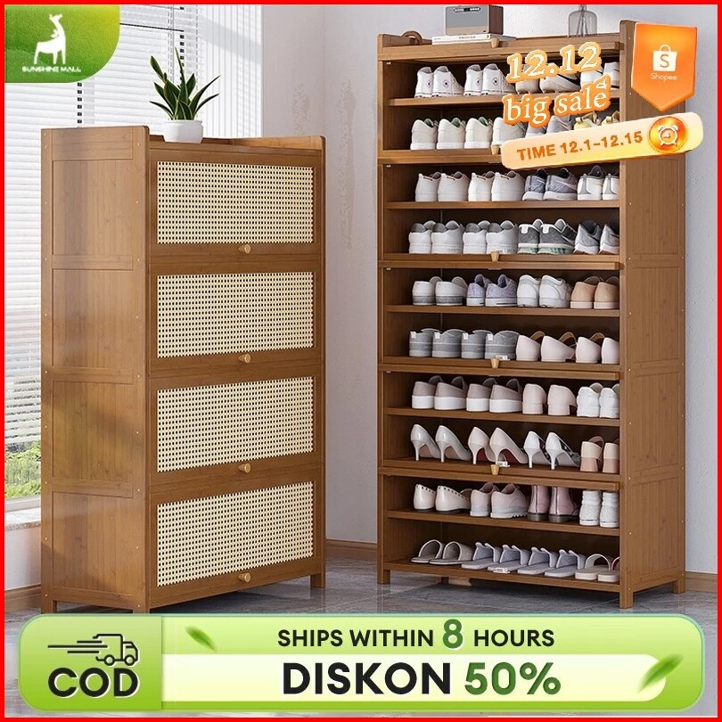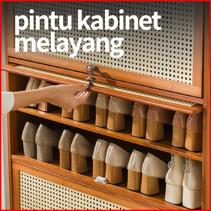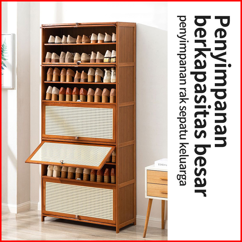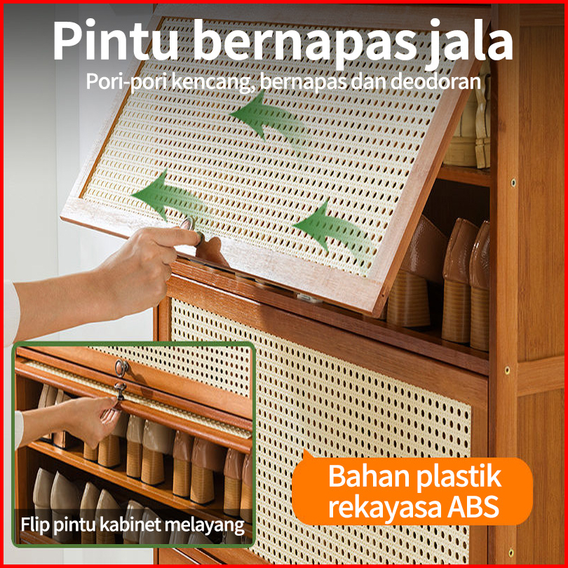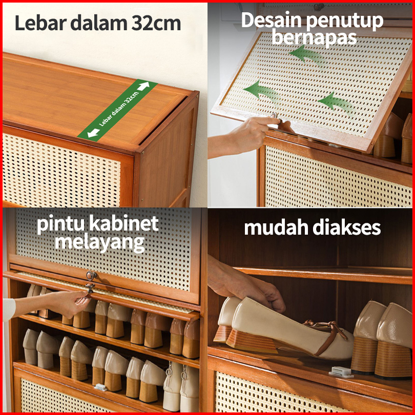 Rak Sepatu Rotan Lemari Sepatu Kayu Jaring Bernapas Rak Lemari Sepatu Tertutup Serbaguna