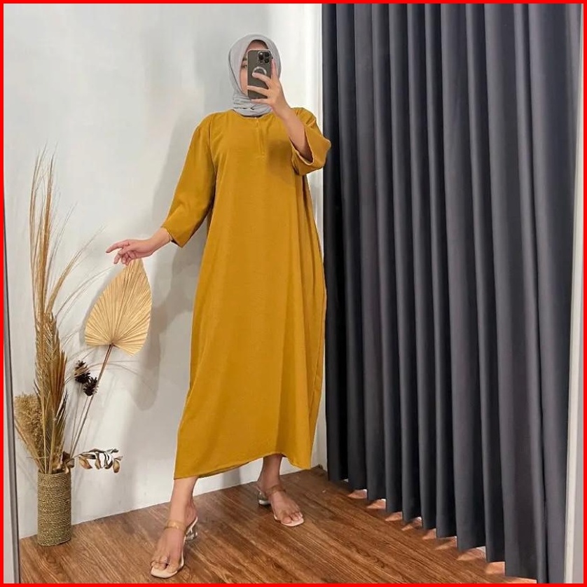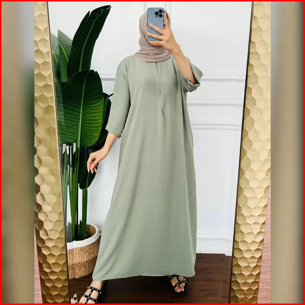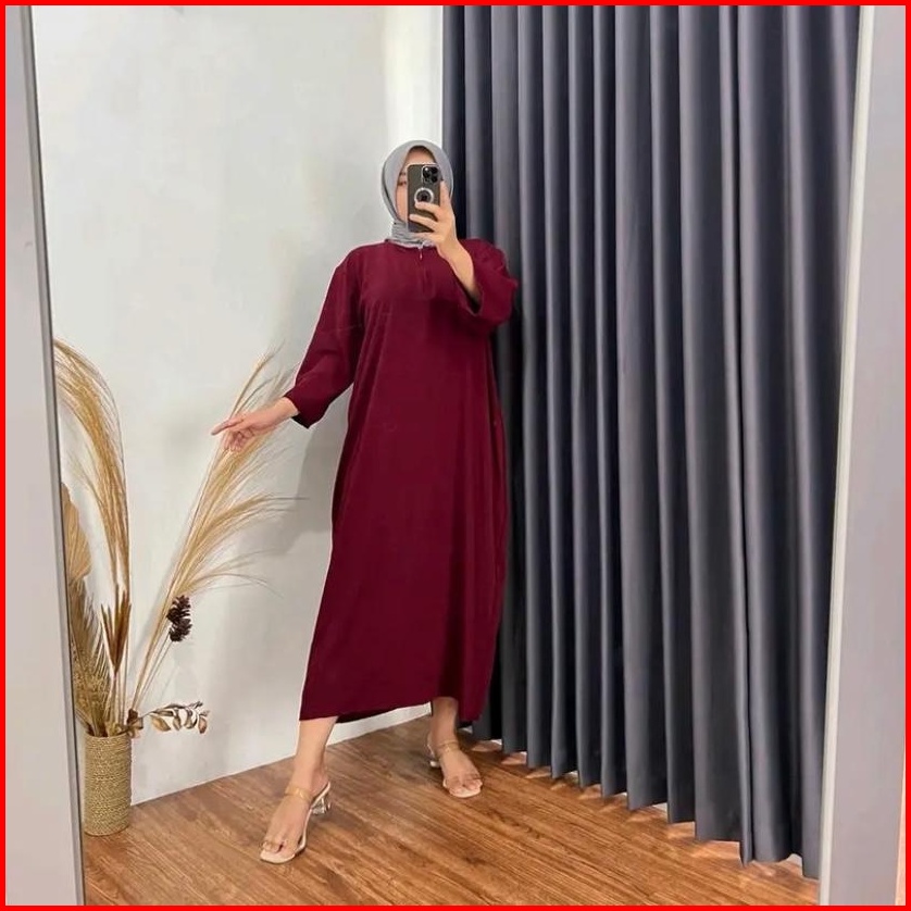 Dress Crinkle Daster Kondangan Zea Long Busui Tangan 3 4