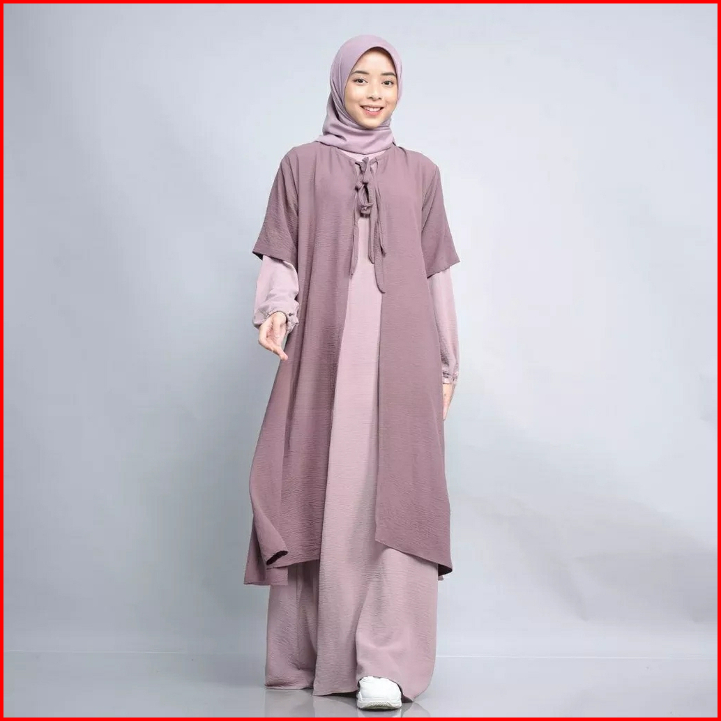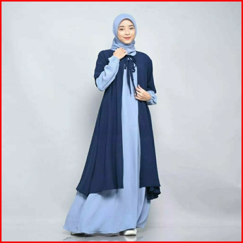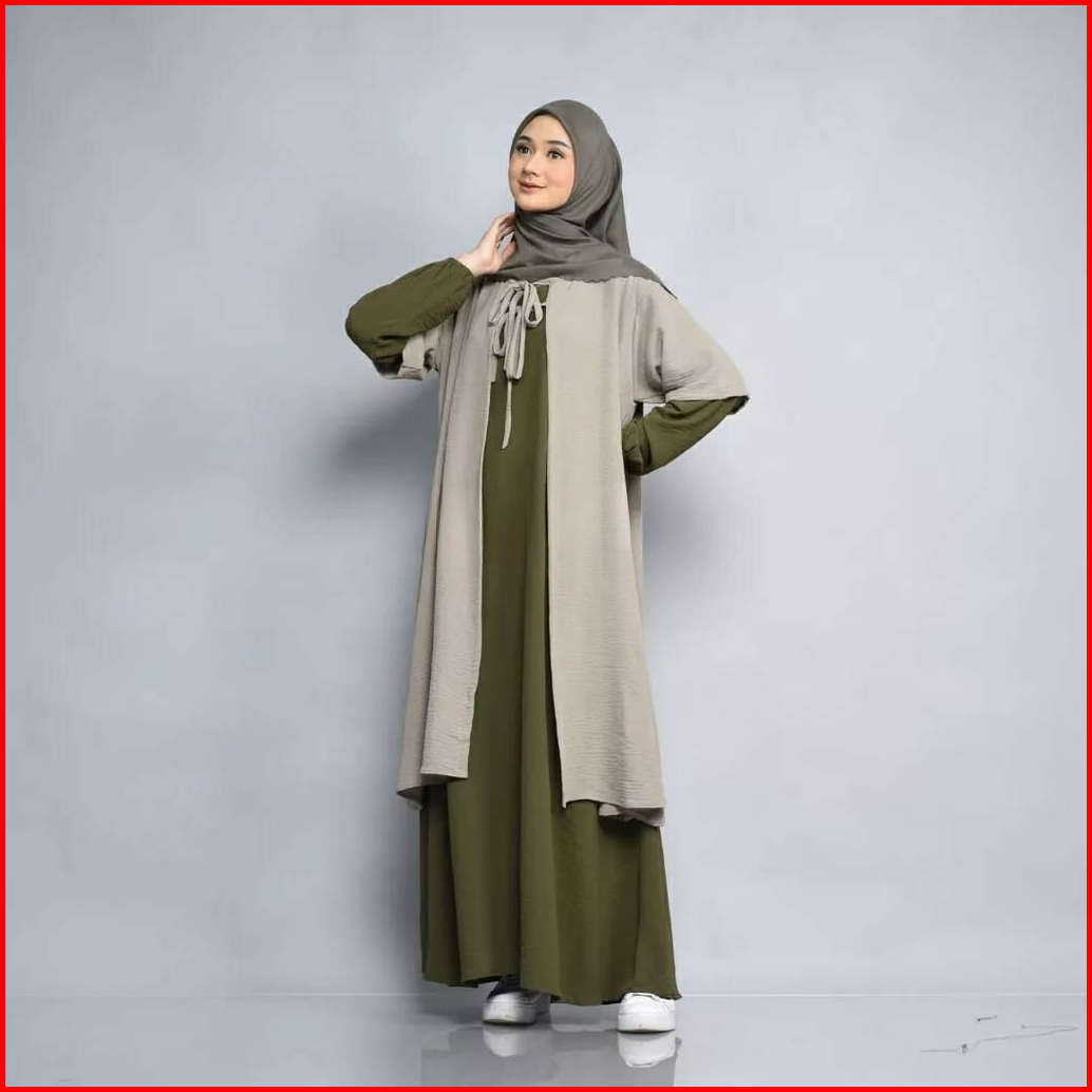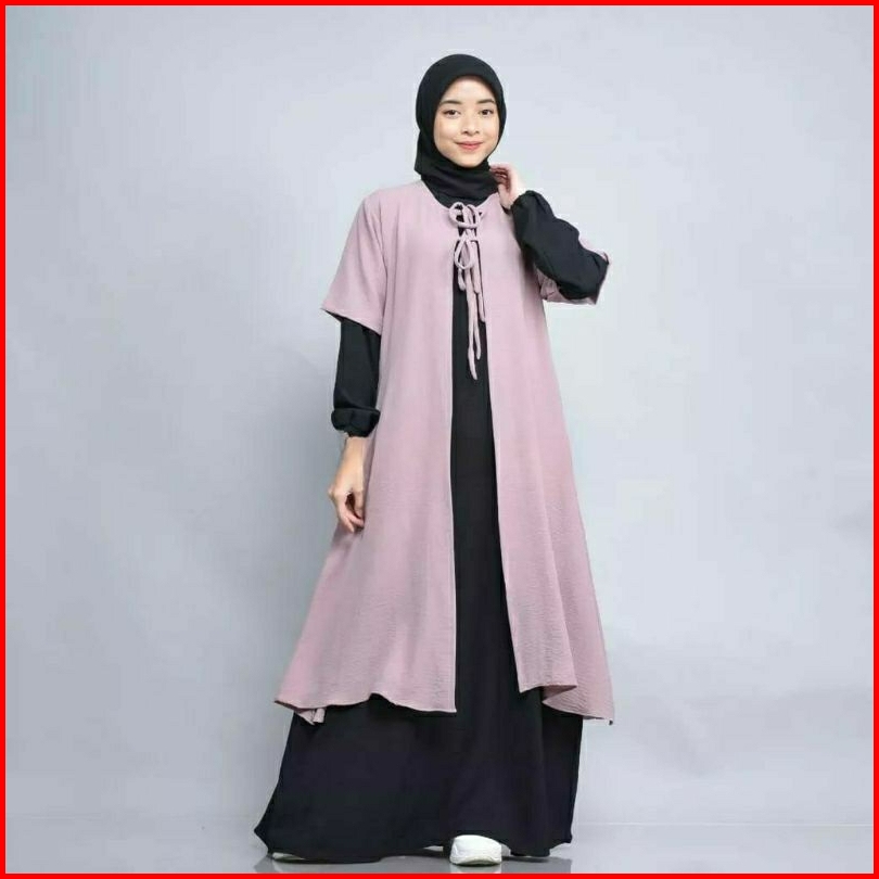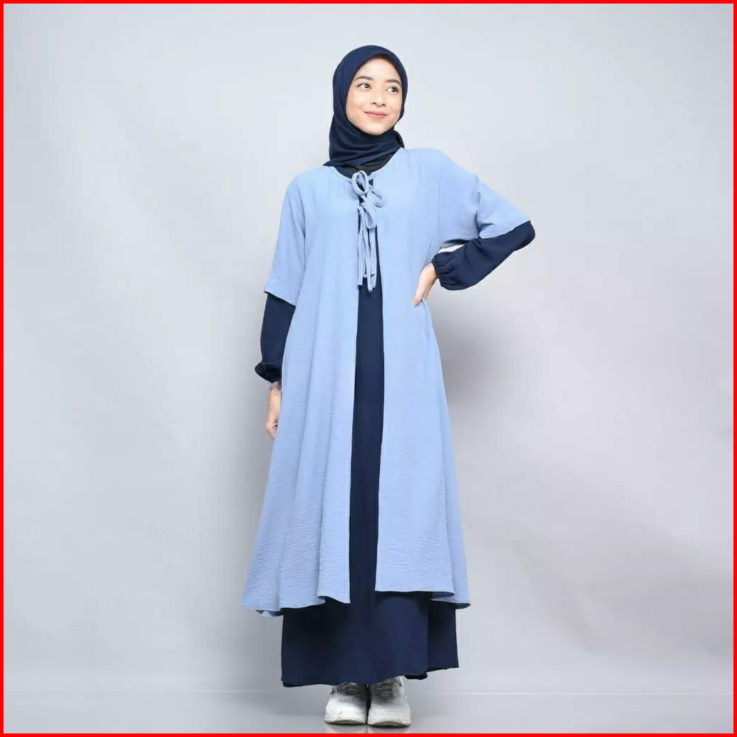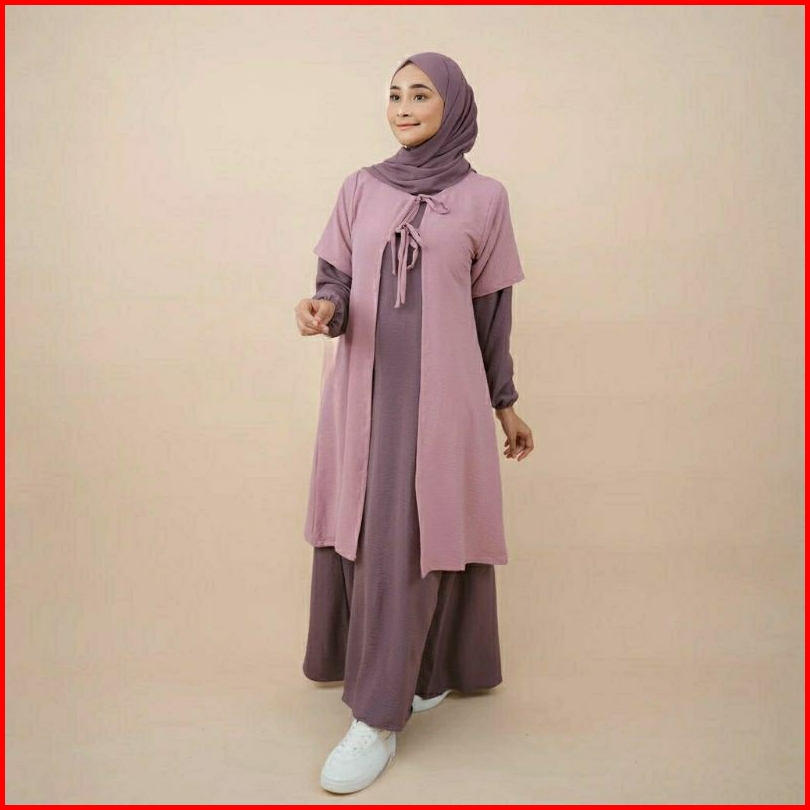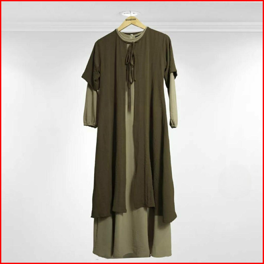 Rz Shafana Dress Tunik 2 In1 Set Gamis Dress Outer Tunik Crinkle Muslim Casual Dress Terbaru