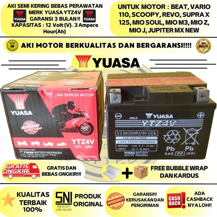 AKI MOTOR BEAT, VARIO 110, SPACY, REVO, BLADE, SCOOPY, CS1 YTZ4V YUASA ORI MF