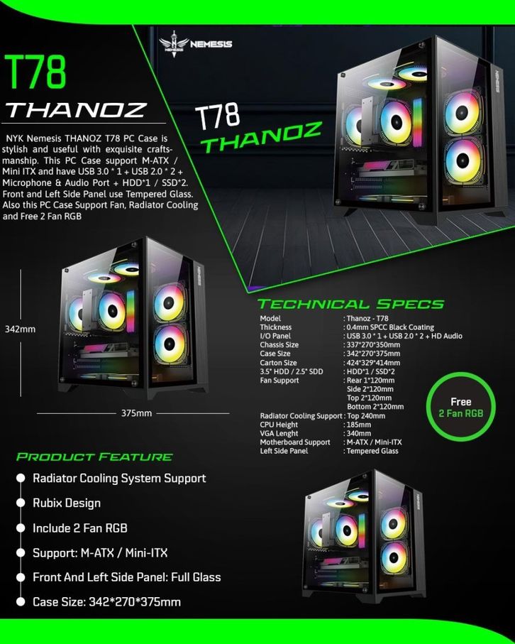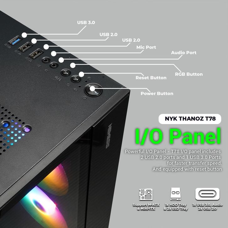 NYK Nemesis THANOZ T78 Mini- ITX M-ATX Aquarium PC Case
