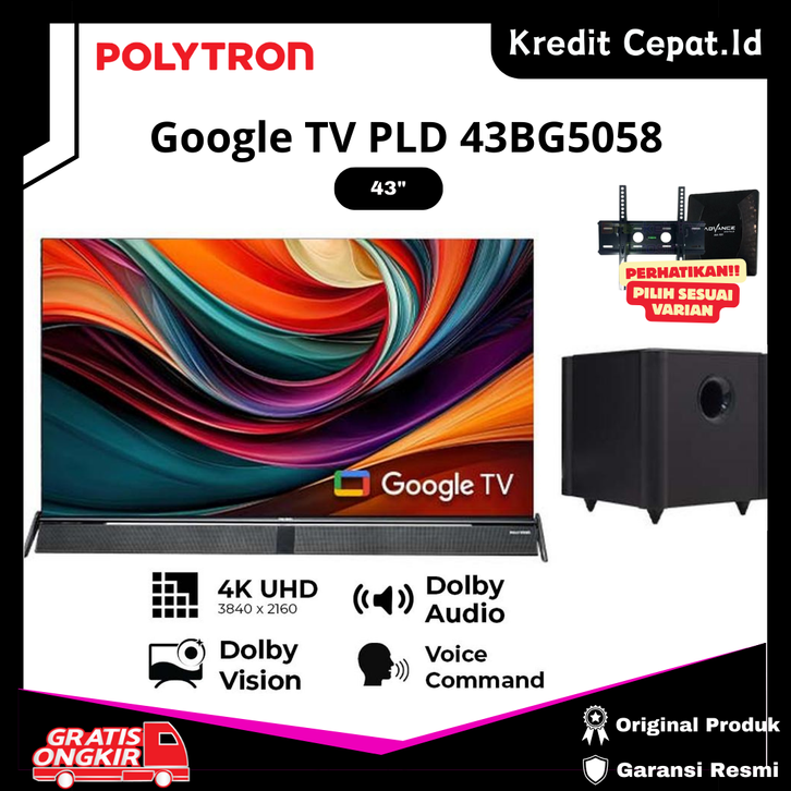 TV LED Polytron Google TV 43 INCH PLD 43BG5058+SWF0251D Garansi Resmi - Kredit Cepat.id